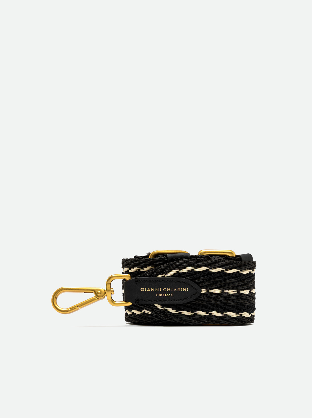 La tracolla by Gianni Chiarini Firenze è realizzata in nylon e cotone a righe, con finiture in pelle che ne esaltano il design. Accessorio versatile e ideale per ogni occasione, aggiunge un tocco distintivo alla tua borsa, offrendo diverse opzioni di portabilità. Dotata di moschettoni in metallo e inserti in pelle logata, è il dettaglio perfetto per completare il tuo look. Dimensioni: 150x5 cm.