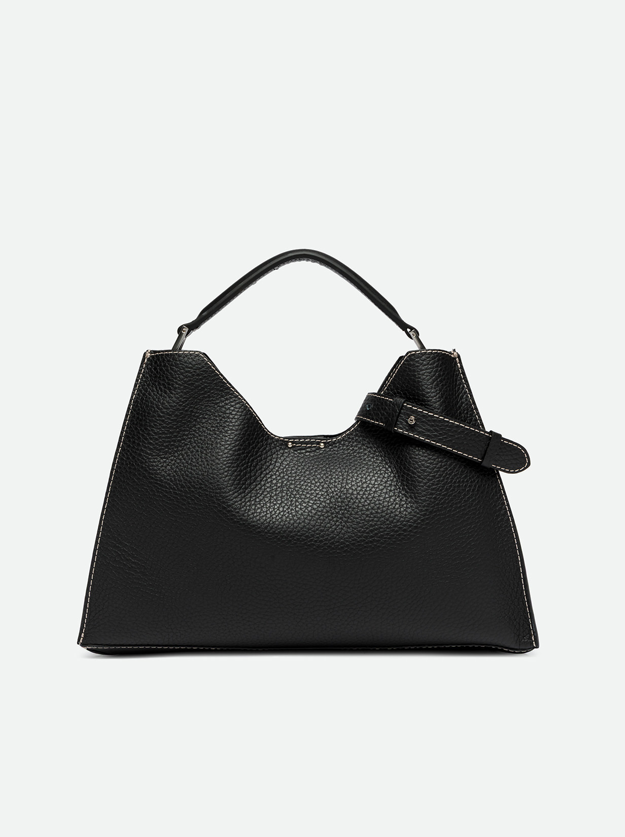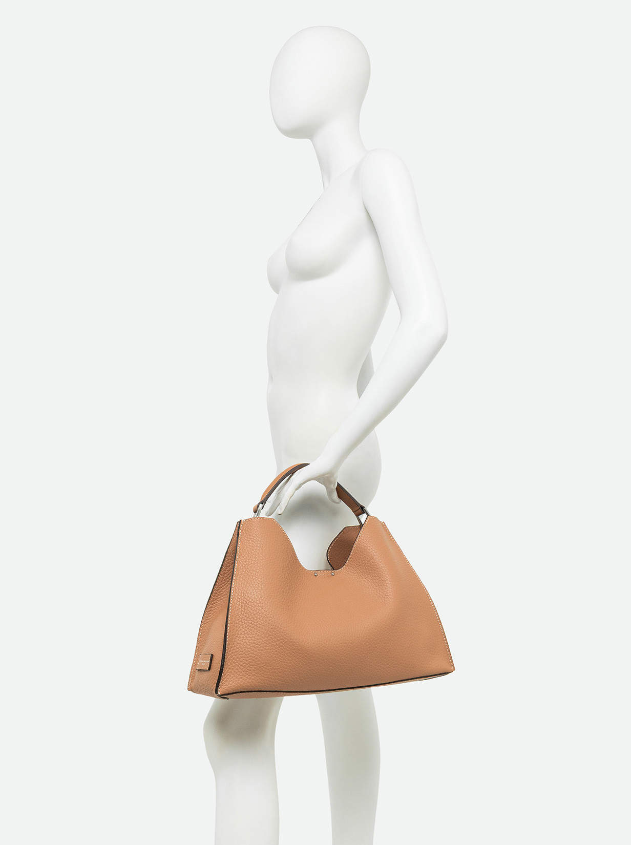 Aurora by Gianni Chiarini Firenze si distingue per la sua forma trapezoidale, un connubio perfetto di eleganza contemporanea. Realizzata in pelle martellata grana maxi, è arricchita da dettagli in metallo e impunture a contrasto che ne esaltano il design. Dotata di una tracolla in pelle regolabile e removibile, offre una doppia modalità di portabilità. Completa di una pratica pochette con chiusura a zip, questa borsa presenta anche una chiusura superiore con magnete per maggiore sicurezza e praticità. Dimensioni: 42x30x10 cm.