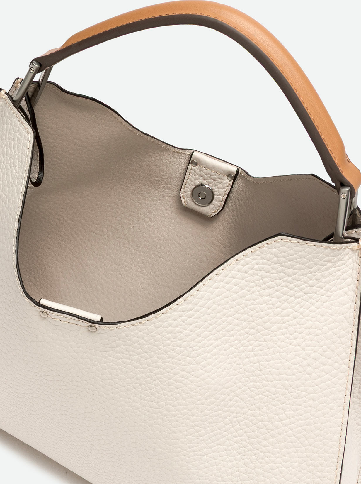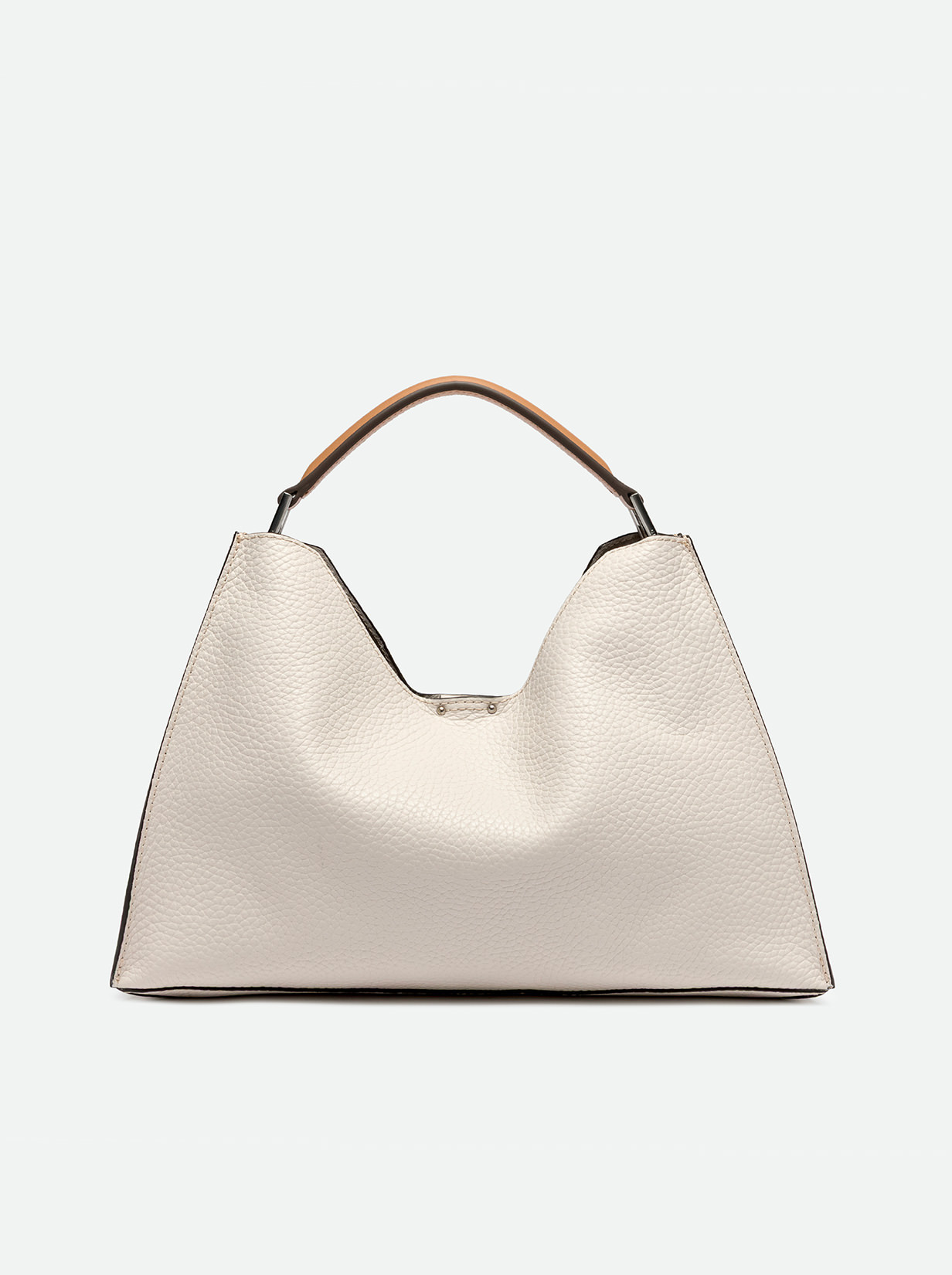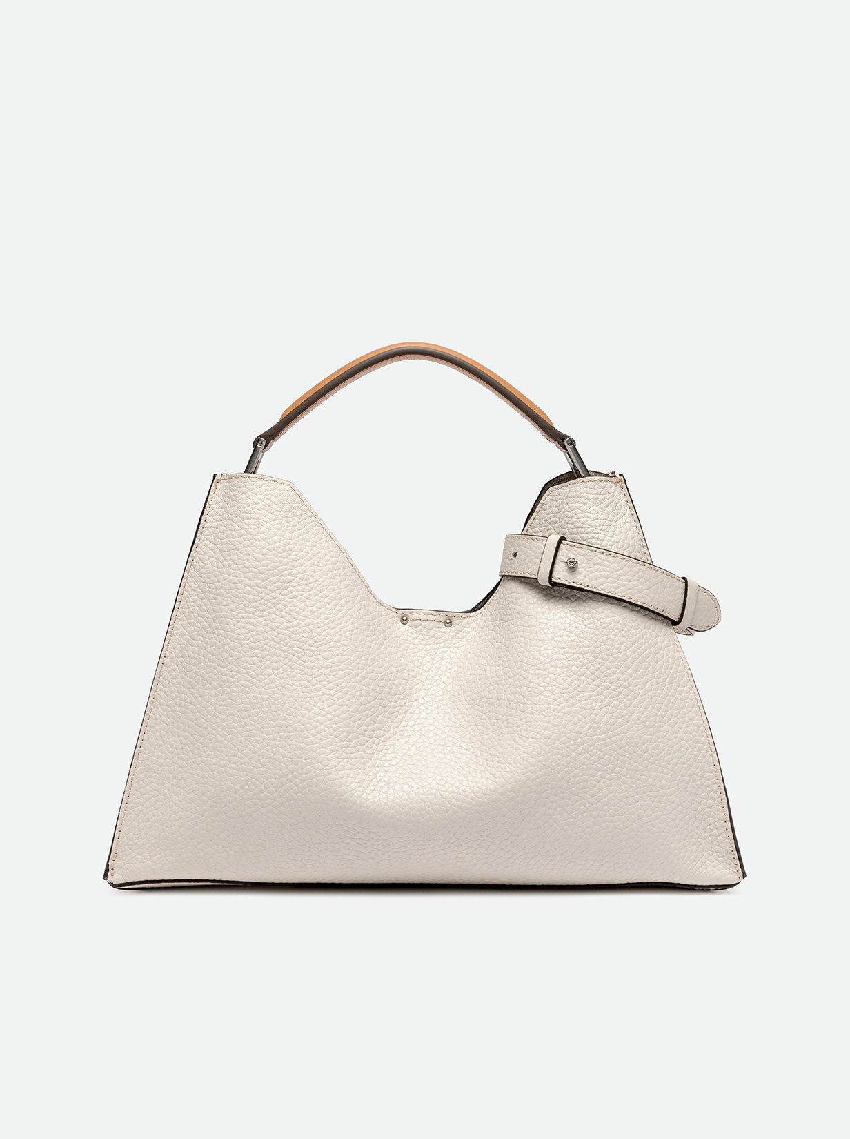 Aurora by Gianni Chiarini Firenze si distingue per la sua forma trapezoidale, un connubio perfetto di eleganza contemporanea. Realizzata in pelle martellata grana maxi, è arricchita da dettagli in metallo e impunture a contrasto che ne esaltano il design. Dotata di una tracolla in pelle regolabile e removibile, offre una doppia modalità di portabilità. Completa di una pratica pochette con chiusura a zip, questa borsa presenta anche una chiusura superiore con magnete per maggiore sicurezza e praticità. Dimensioni: 42x30x10 cm.