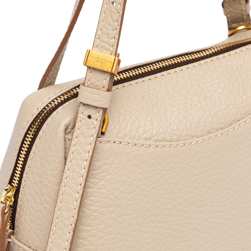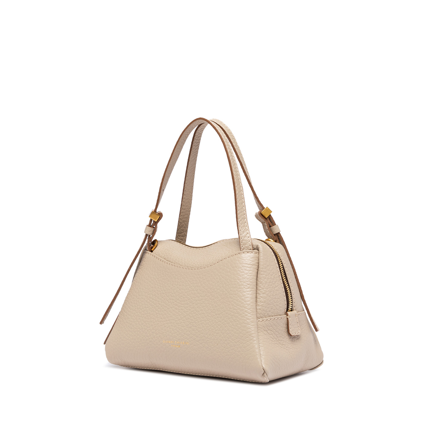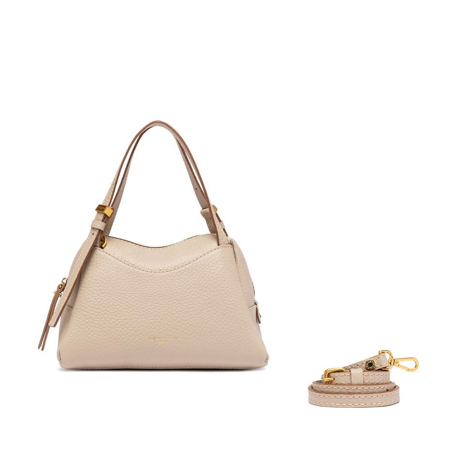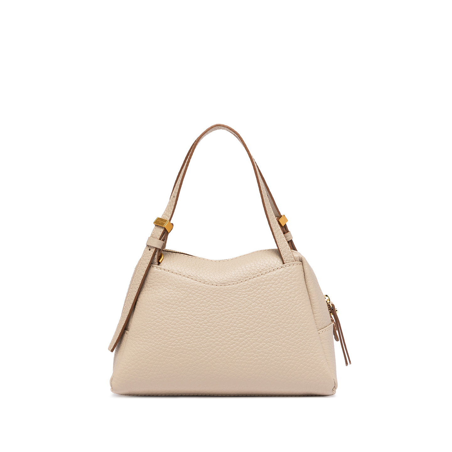 La nuova minibag Dea, realizzata in pelle grana maxi, si distingue per le sue forme semplici e di tendenza. Dotata di uno scomparto principale con chiusura a zip, presenta linee geometriche ed essenziali che le conferiscono un look moderno e lineare. I dettagli logati aggiungono un tocco di carattere. Può essere portata a mano o crossbody, grazie alla tracolla inclusa. Dimensioni: 26x16x15 cm.
