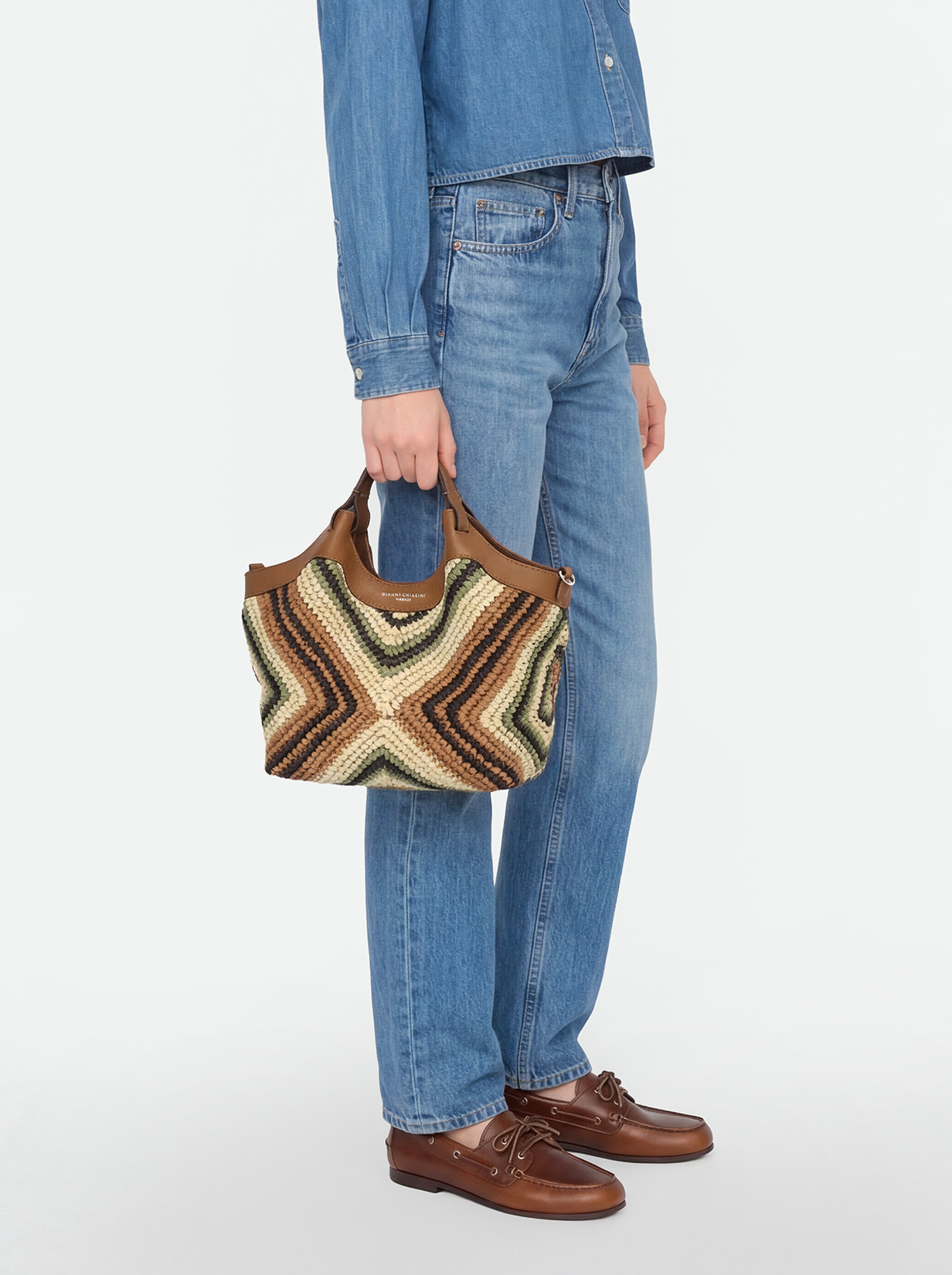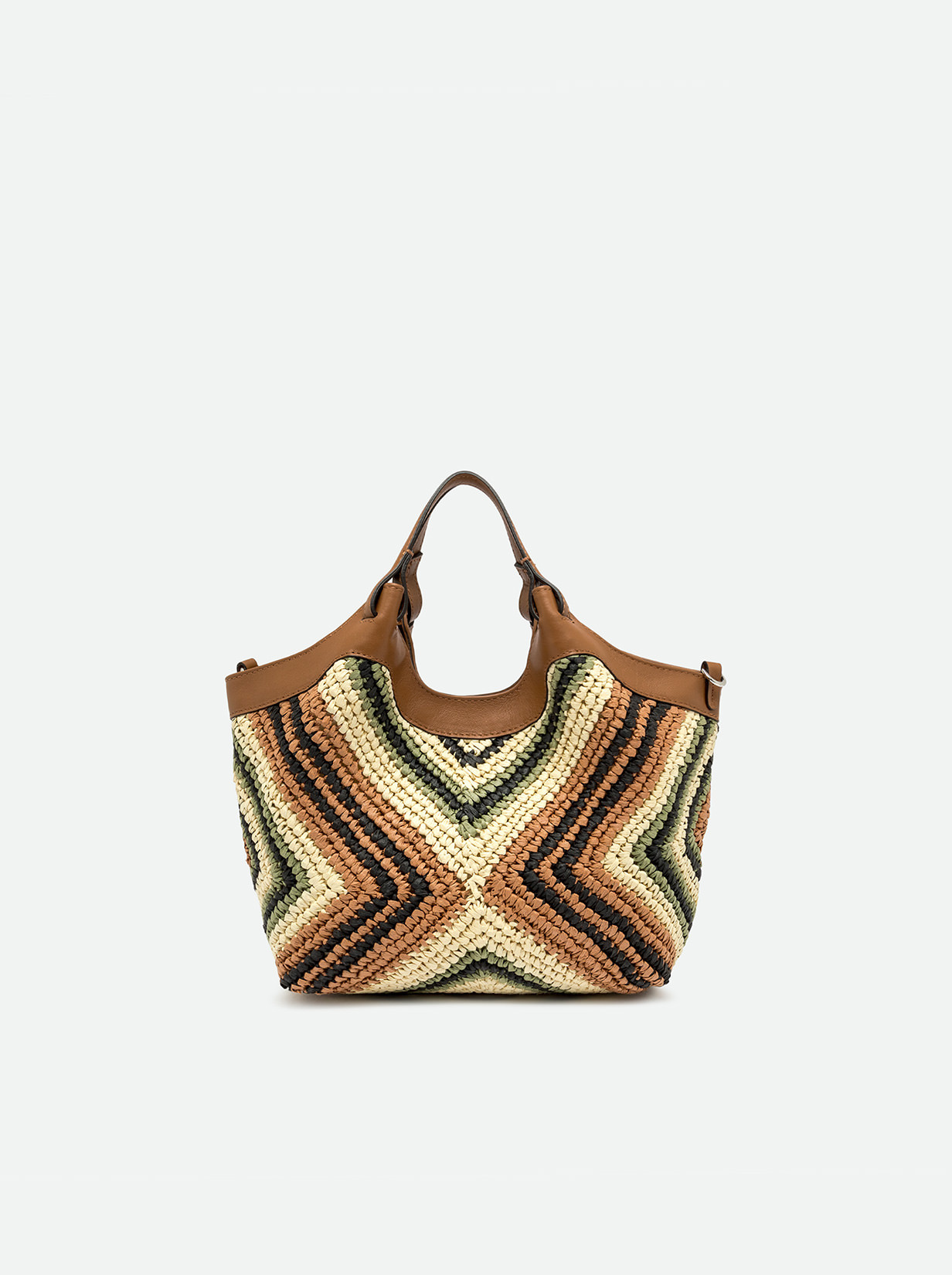 L'icona del brand, la borsa DUA, è realizzata in paglia intrecciata, caratterizzata da una texture unica e distintiva. Dotata di un monoscomparto, presenta profili superiori in pelle e doppi manici in tono. Pratica ed essenziale, è perfetta per completare ogni look con stile. Può essere portata a mano o a spalla. Dotata di una pratica pochette con chiusura a zip. Dimensioni: 24x27x12 cm.