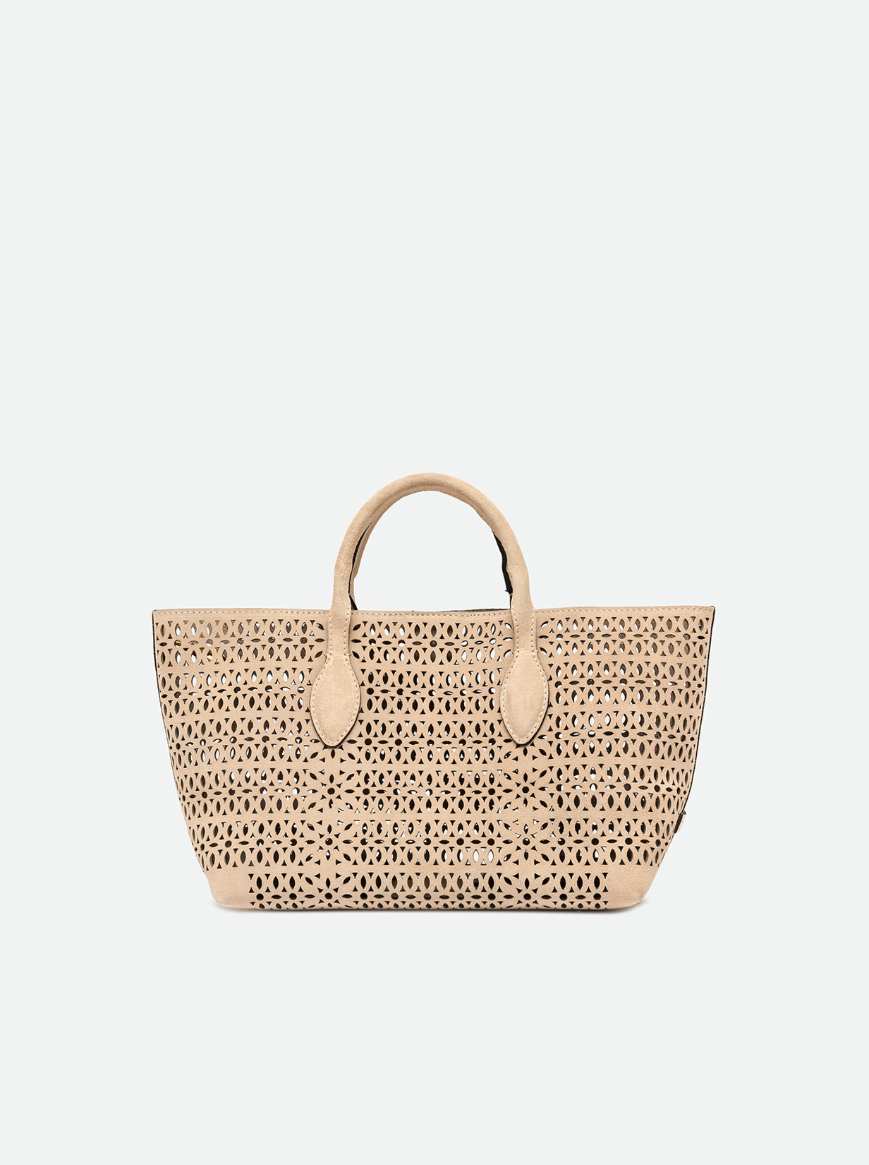 La borsa a mano Mashup di Gianni Chiarini Firenze è realizzata in suede laserato, che dà vita a un sofisticato decoro traforato, rendendola unica e senza tempo. Dotata di due manici in pelle e chiusura con bottone magnetico, è ideale per completare un look casual quotidiano. Include una tracolla regolabile e removibile, per un’opzione crossbody pratica e versatile. Dimensioni: 30x22x14 cm.