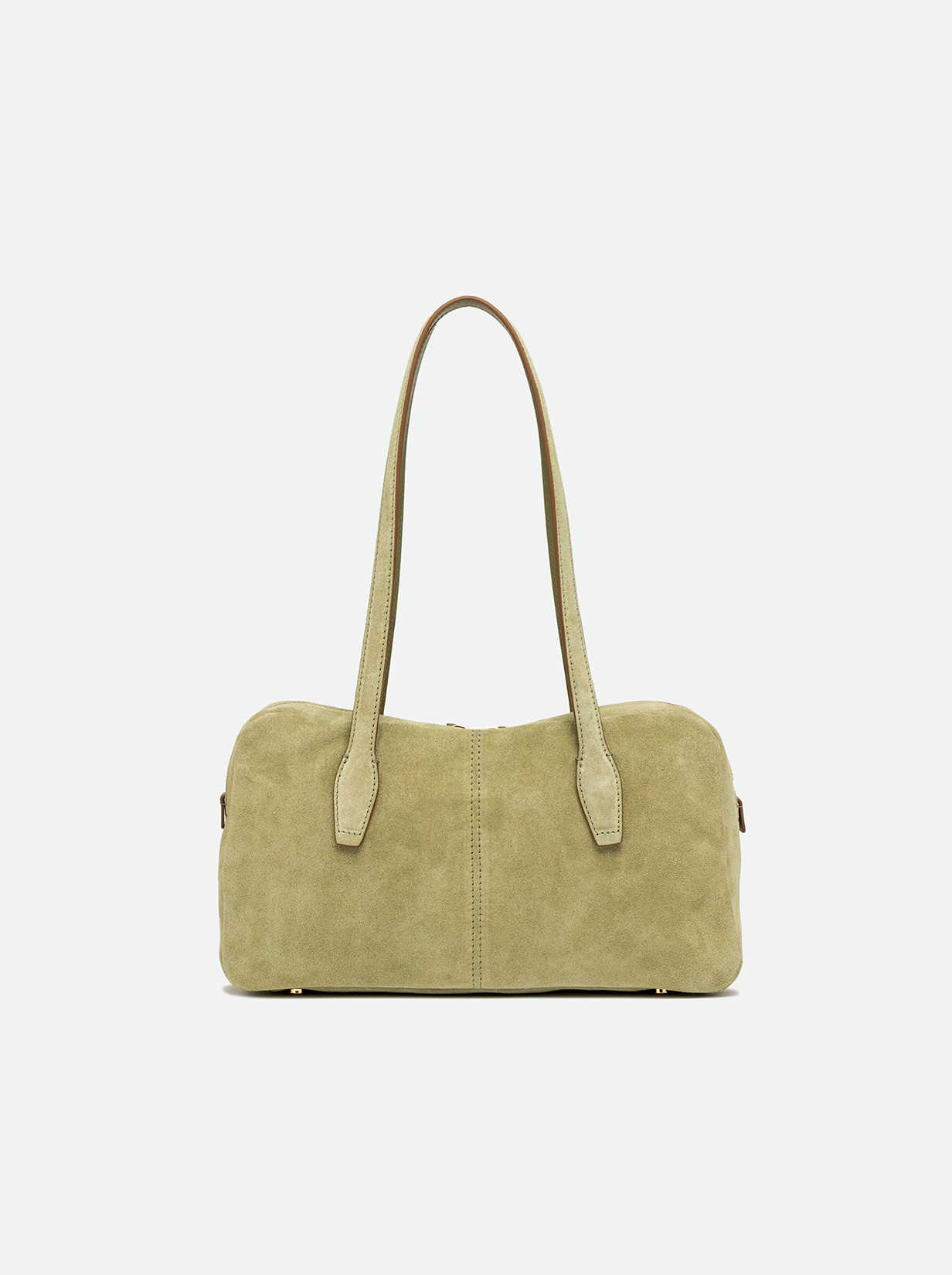 Aryna è la bowling bag firmata Gianni Chiarini Firenze, realizzata in pelle scamosciata. Ideale per una donna sportiva e disinvolta, ma sempre attenta alla femminilità. Dotata di doppio manico per una portabilità a mano, presenta uno scomparto principale con zip a doppio cursore e tirazip in pelle con dettagli metallici. I rivetti logati completano il design con un tocco distintivo.