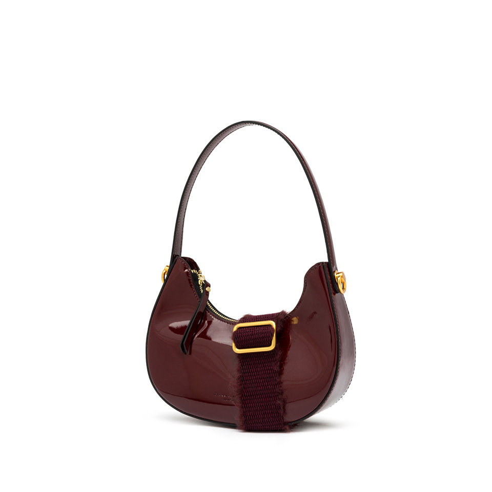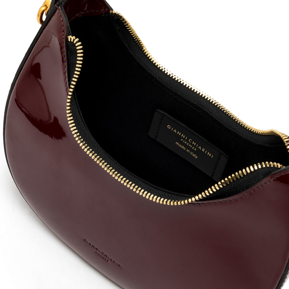 Blanche è una borsa dal carattere disinvolto e femminile, realizzata in pelle liscia verniciata dall'effetto brillante e arricchita da dettagli in metallo che ne esaltano la lucentezza. La tracolla removibile e regolabile in tessuto offre una doppia portabilità, permettendo di indossarla a mano o crossbody. Un accessorio versatile, perfetto per ogni occasione. Dimensioni: 23x19x8 cm.