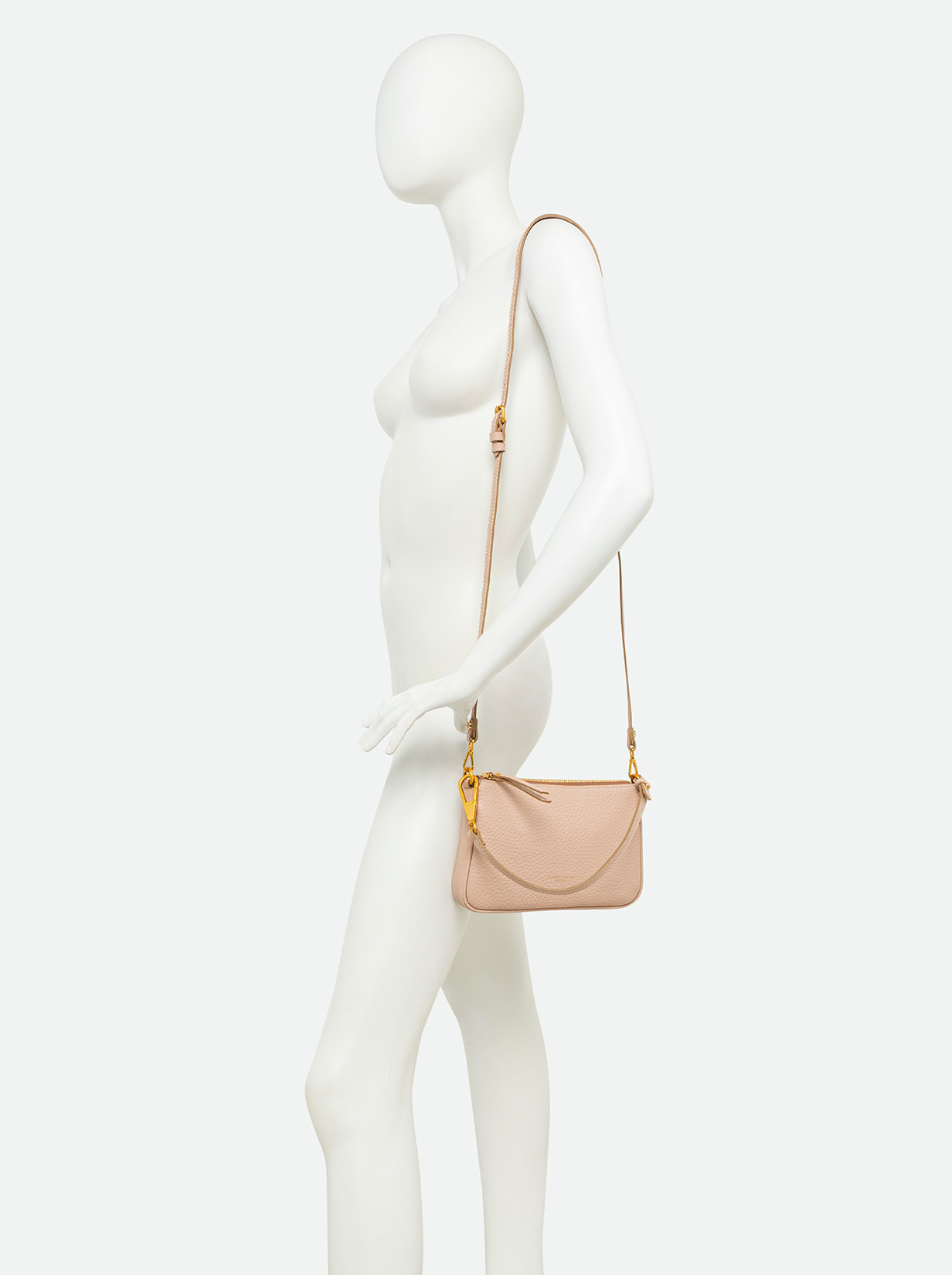 Semplice ed elegante, Brooke by Gianni Chiarini Firenze è realizzata in pelle dalla grana maxi e impreziosita da una chiusura con zip e dal dettaglio del moschettone sul manico removibile. Completa di una tracolla è perfetta per l'uso quotidiano, unisce stile e funzionalità in un design essenziale. Dimensioni: 23x14x4 cm.