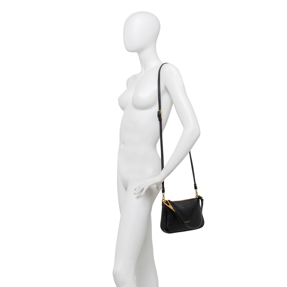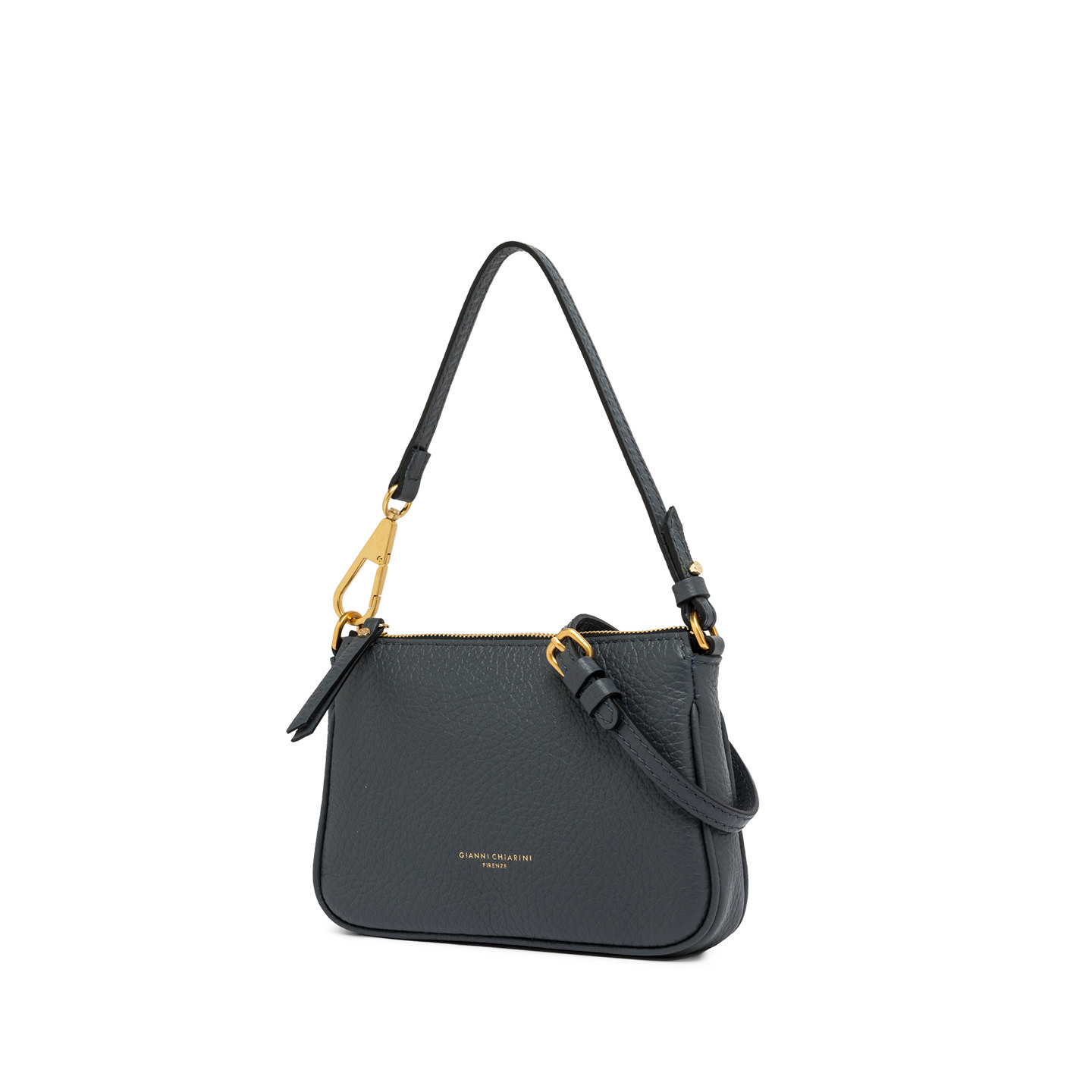 Semplice ed elegante, Brooke by Gianni Chiarini Firenze è realizzata in pelle grana maxi e impreziosita da una chiusura a zip e dal dettaglio del moschettone sul manico removibile. Completa di una tracolla aggiuntiva, è perfetta per un utilizzo quotidiano. Dimensioni: 23x14x4 cm.