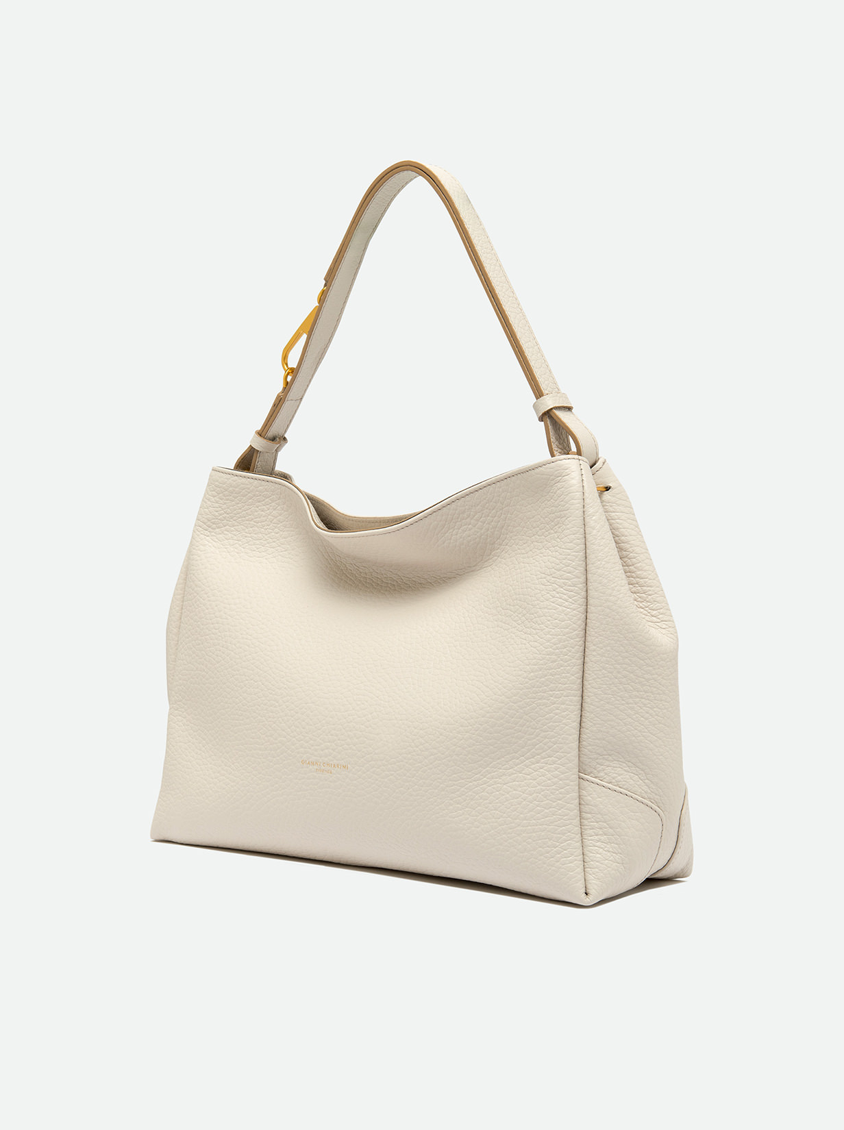 Cecile by Gianni Chiarini Firenze si distingue per il suo design minimalista e le linee essenziali. Realizzata in pelle grana maxi, presenta una silhouette a cartella, perfetta per donne dinamiche che desiderano combinare funzionalità e stile. È dotata di un manico superiore regolabile per diverse opzioni di portabilità. L'interno ampio include un scomparto principale e una chiusura superiore con patta e bottone magnetico. Dimensioni: 38x28x14 cm.