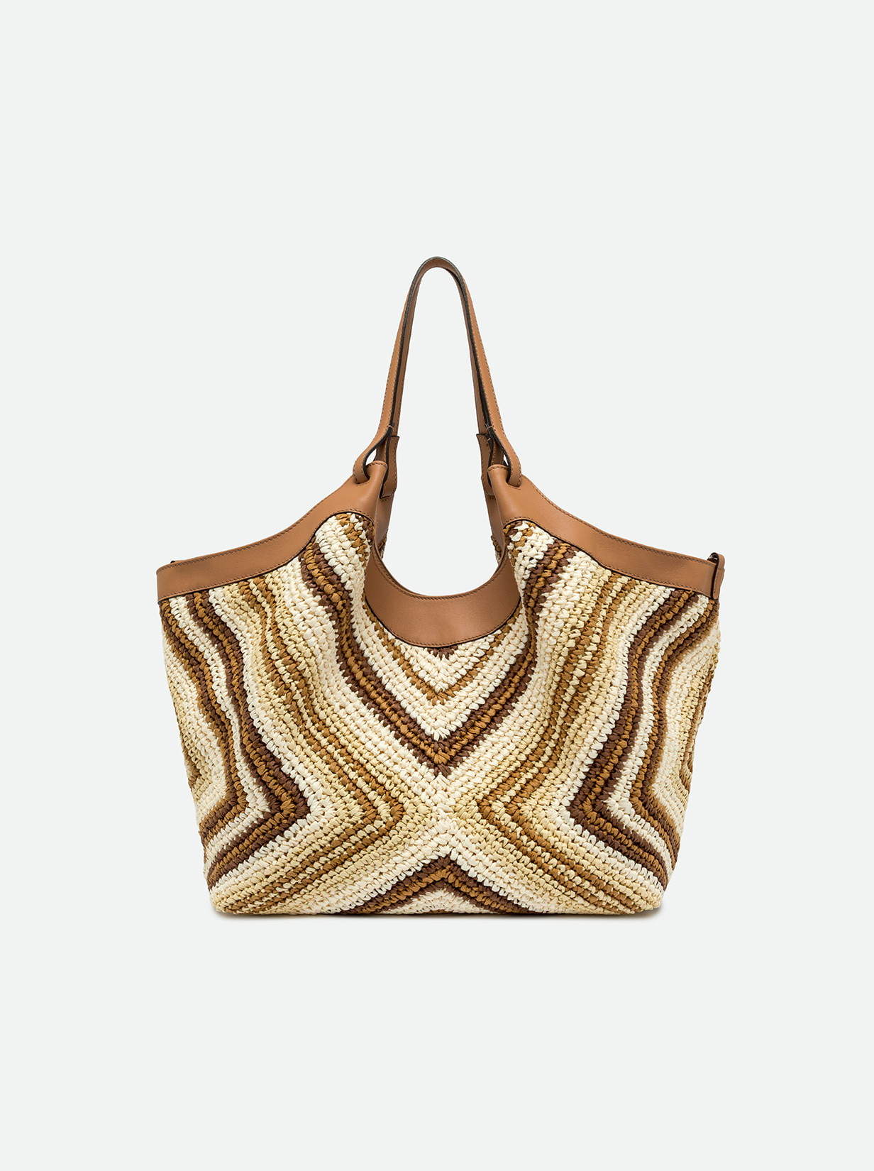 L'icona del brand, la borsa DUA, è realizzata in paglia intrecciata, caratterizzata da una texture unica e distintiva. Dotata di un monoscomparto, presenta profili superiori in pelle e doppi manici in tono. Pratica ed essenziale, è perfetta per completare ogni look con stile. Dotata di una pratica pochette con chiusura a zip. Dimensioni: 34x38x16 cm.
