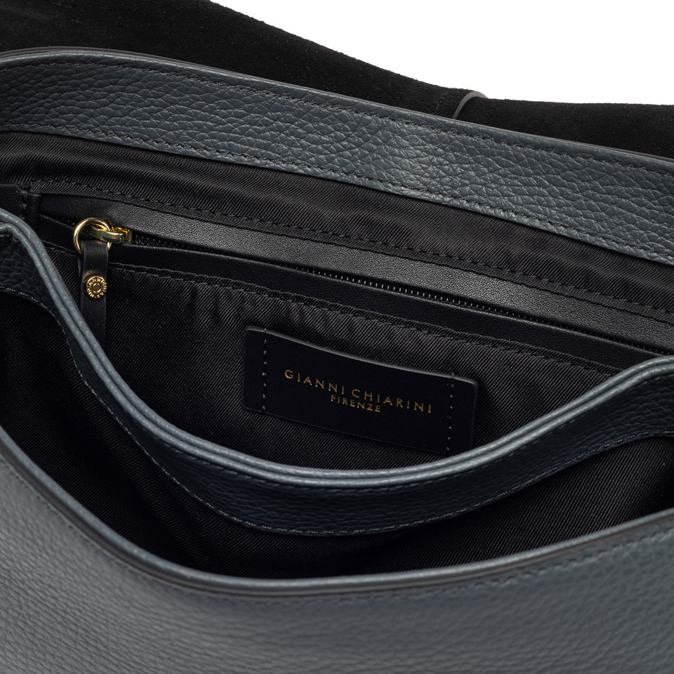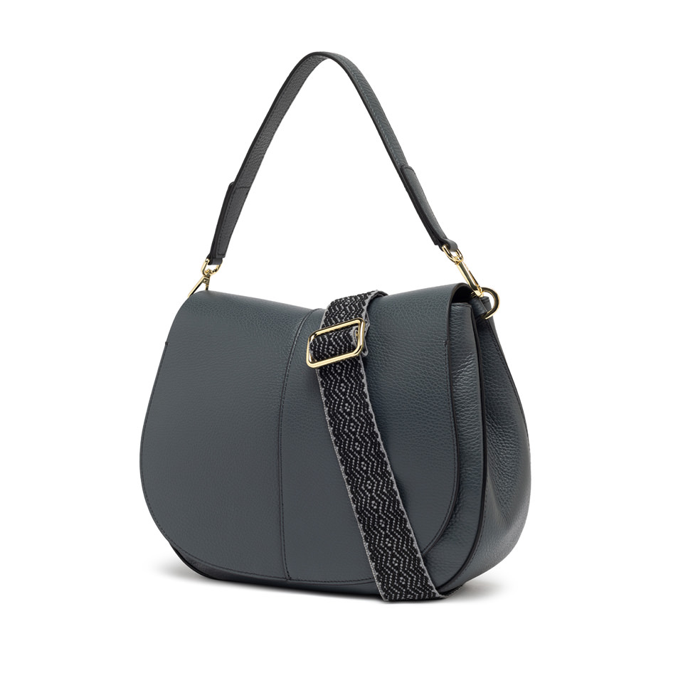 L’iconica Helena Round di Gianni Chiarini Firenze, in pelle martellata, si distingue per il suo design strutturato dall’appeal contemporaneo. Versatile e funzionale, è dotata di una tracolla per una doppia portabilità e offre un’organizzazione impeccabile grazie al doppio compartimento interno e alla tasca a scomparsa sul retro. Dimensioni: 33x24x9 cm.