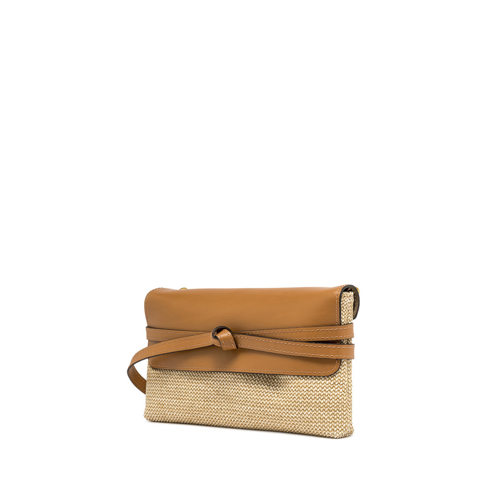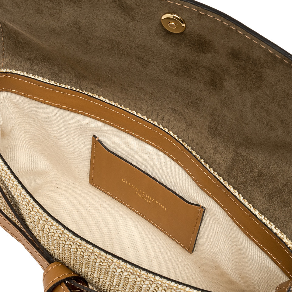 Belty è la nuova pochette firmata Gianni Chiarini Firenze, realizzata in paglia e arricchita da dettagli in pelle. Il dettaglio distintivo è il laccio che avvolge la borsa come una cintura, creando un elegante nodo decorativo sul davanti. Dotata di una tracolla removibile, è perfetta anche per un utilizzo crossbody.