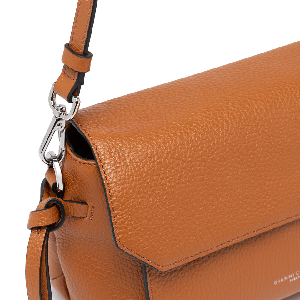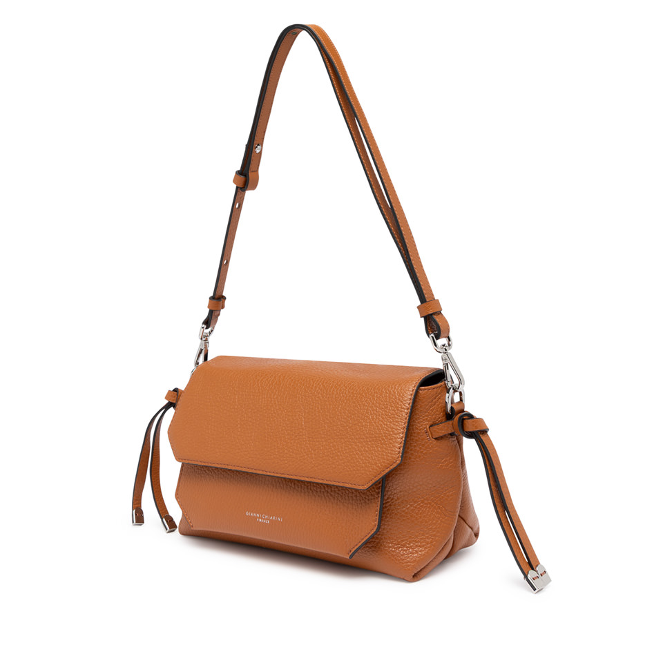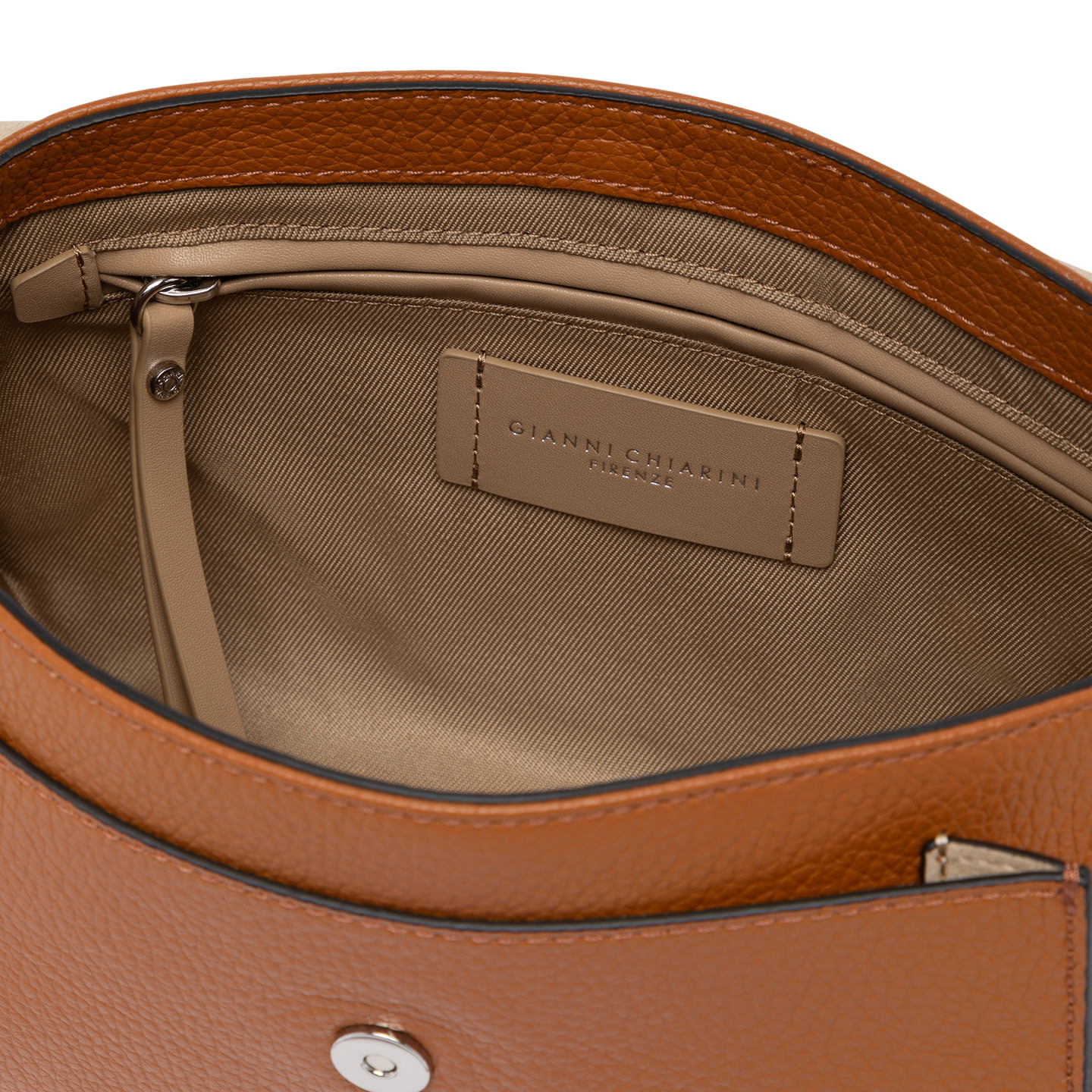 Brina by Gianni Chiarini Firenze è una borsa in pelle martellata con linee minimal e squadrate. I dettagli annodati e i componenti in metallo aggiungono un tocco luminoso. È dotata di un manico in pelle per essere indossata comodamente a spalla e di una tracolla regolabile e removibile, ideale per un'opzione crossbody. La chiusura superiore con zip garantisce sicurezza e praticità. Dimensioni: 25x17,5x8 cm.