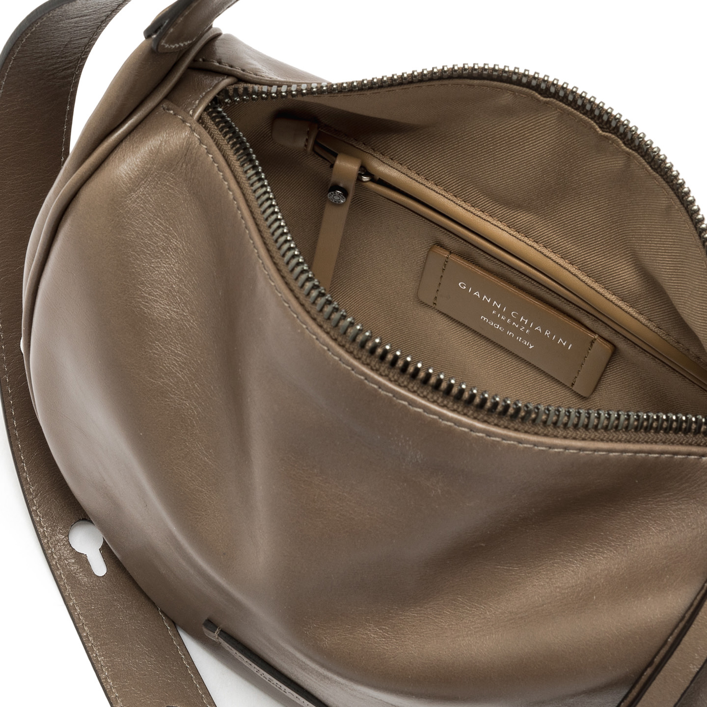 Charlotte è la nuova borsa a spalla in pelle dall'effetto vintage, dal design essenziale e una morbida silhouette hobo, perfetta per donne dinamiche che amano coniugare praticità e stile. Dotata di un ampio scomparto principale con zip e tirazip in pelle con dettagli metallici, offre funzionalità senza rinunciare all'eleganza. Il manico regolabile consente una portabilità versatile, rendendola un accessorio ideale per ogni occasione. Dimensioni: 26x19x10 cm.