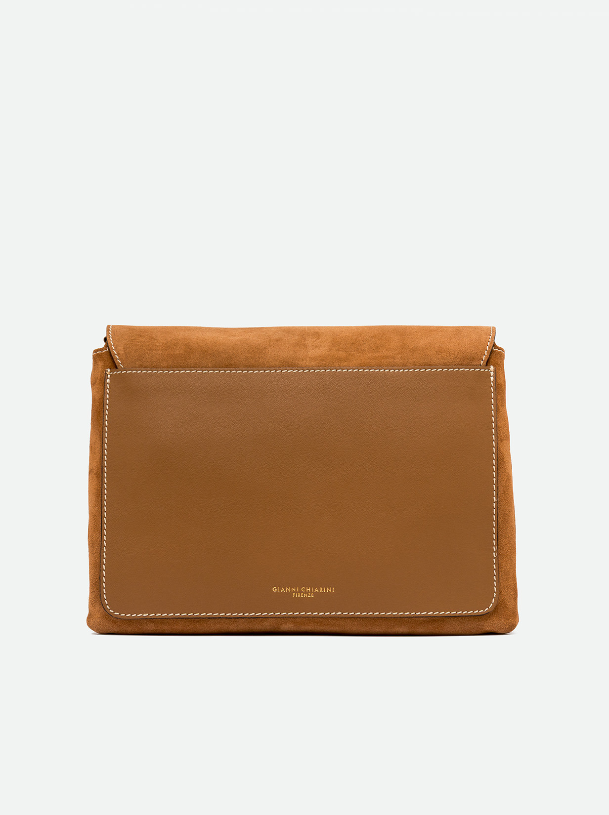 Da portare a mano o con la sottile tracolla in pelle, la borsa Three by Gianni Chiarini Firenze è realizzata in pregiata pelle scamosciata. Giovane e divertente, presenta un design innovativo che si distingue per le zip a contrasto, patta e bottone magnetico nella parte superiore. Perfetta per outfit casual, ma anche per serate eleganti. Dimensioni: 31x24x7 cm.