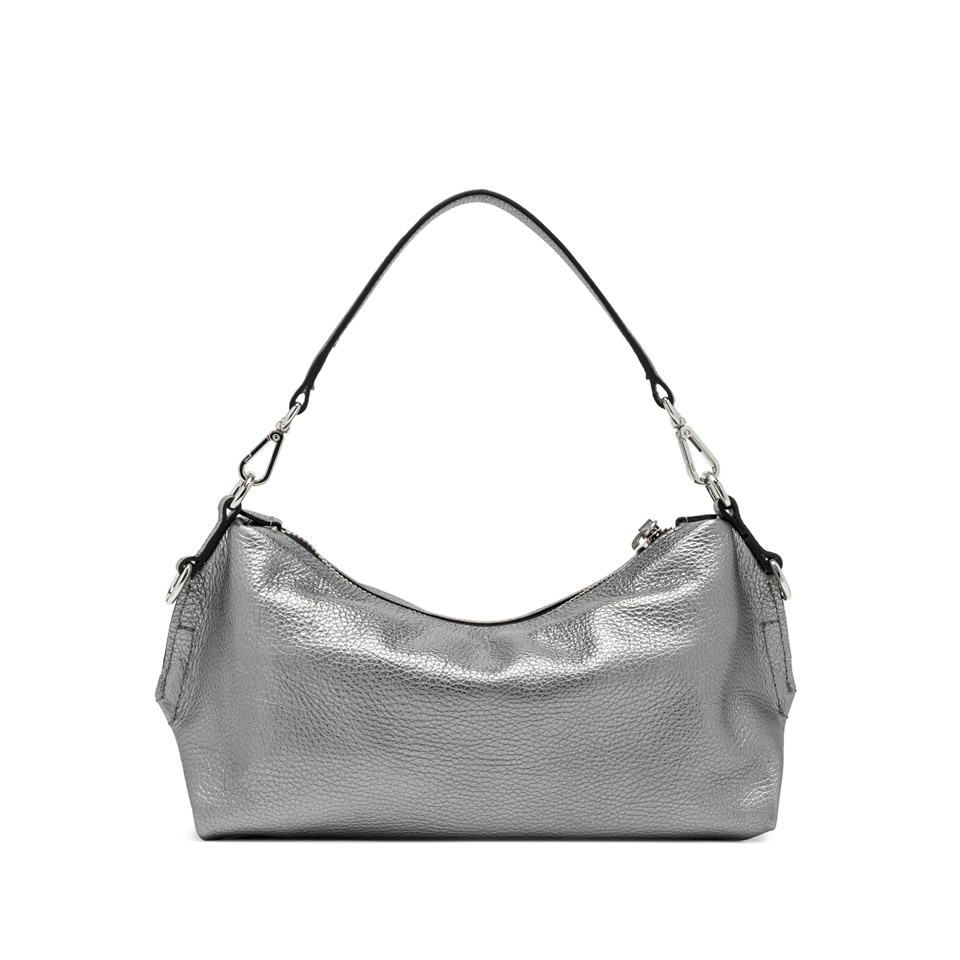 Caratterizzata da una morbida silhouette a trapezio, Virginia è una borsa versatile ed elegante, perfetta per accompagnare ogni momento della giornata. Realizzata in pelle martellata laminata, si distingue per la sua funzionalità e stile senza tempo. Dotata di una chiusura a zip, un manico tono su tono e una tracolla in pelle regolabile e removibile, unisce praticità e raffinatezza. Dimensioni: 25x16x11 cm.