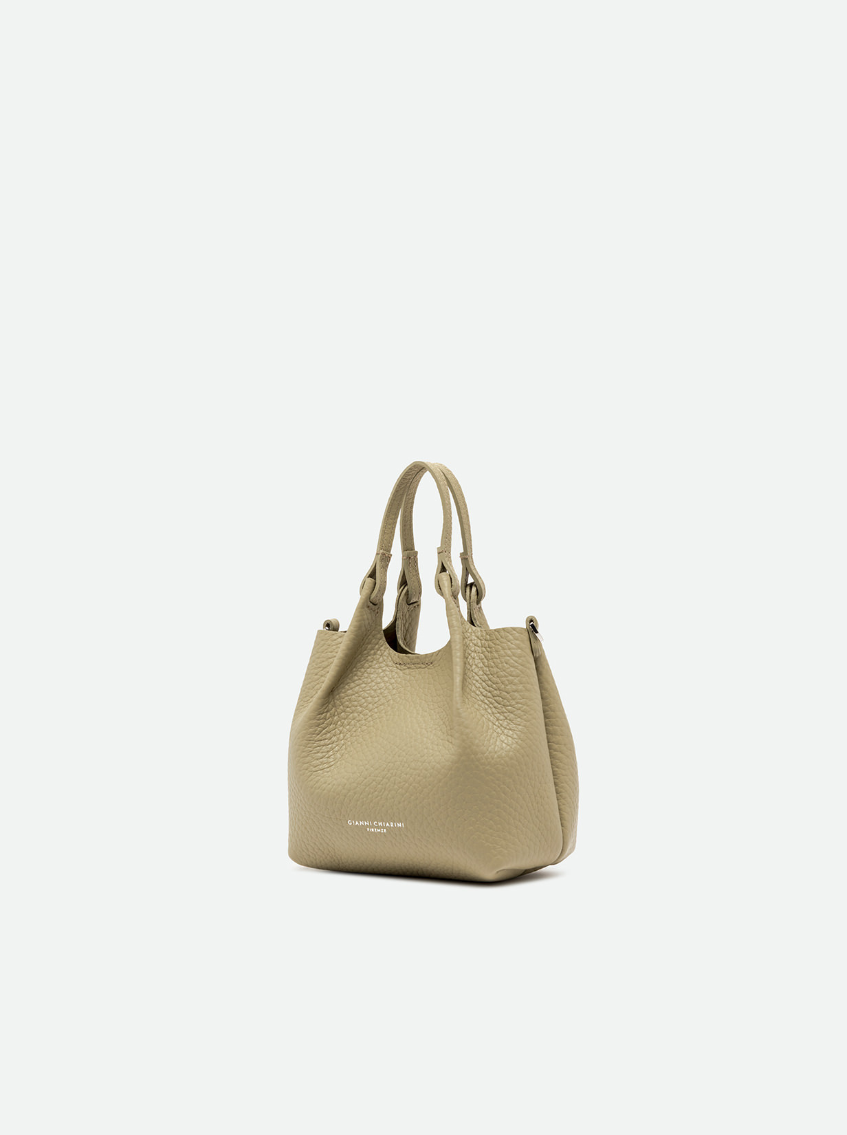 L'icona del brand, la borsa DUA, è realizzata in pelle dalla grana maxi, caratterizzata da una texture unica e distintiva. Dotata di un monoscomparto sfoderato, presenta profili superiori in pelle martellata e doppi manici in tono. Pratica ed essenziale, è perfetta per completare ogni look con stile. Può essere portata a mano o a spalla. Dimensioni: 19x20x8 cm.