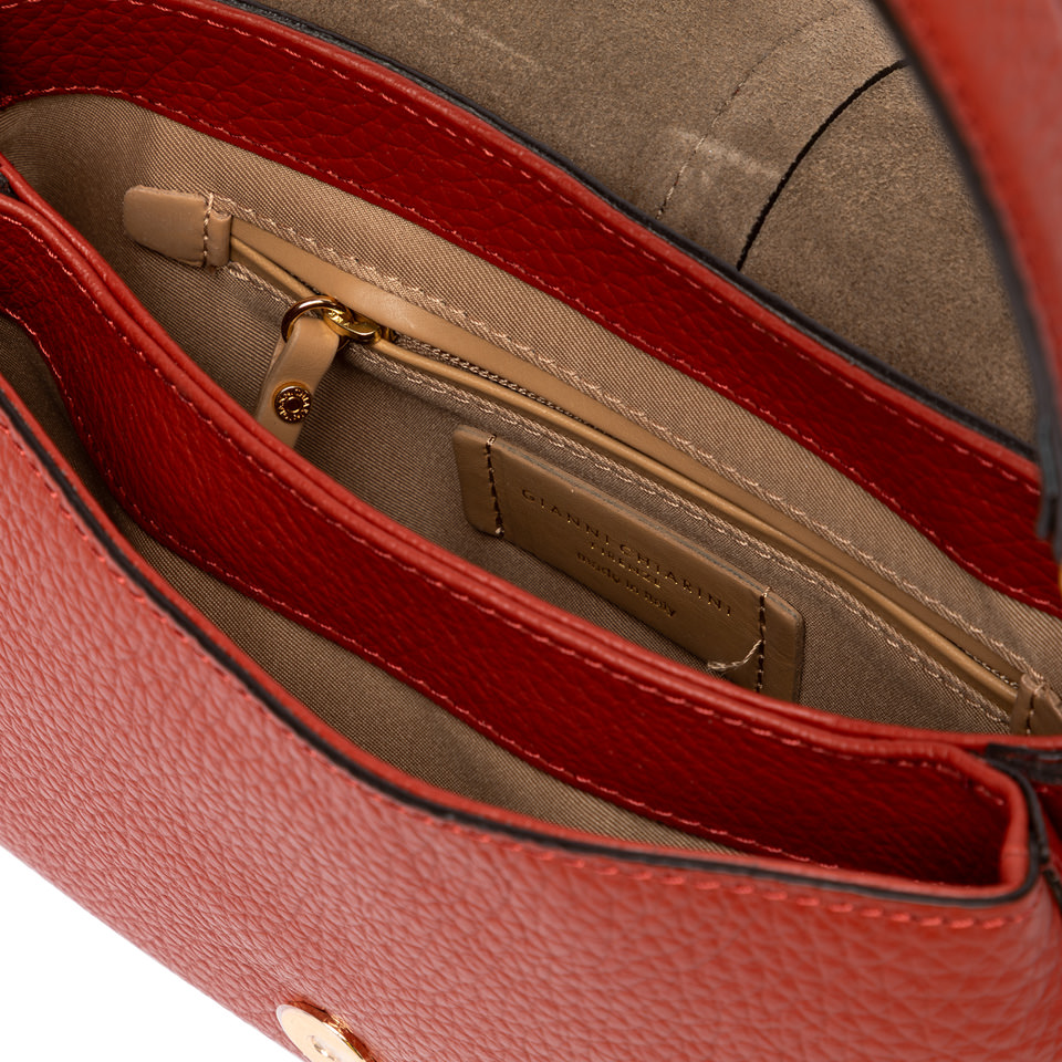 La borsa iconica Helena Round by Gianni Chiarini Firenze è realizzata in pelle grana maxi e presenta un design strutturato dall'appeal contemporaneo e chic. Grazie alle tracolle di cui è dotata offre una doppia portabilità. Pratica e organizzata è caratterizzata da un doppio compartimento interno e da una tasca a scomparsa anche nella parte posteriore della borsa. Dimensioni: 28x16x7,5 cm.