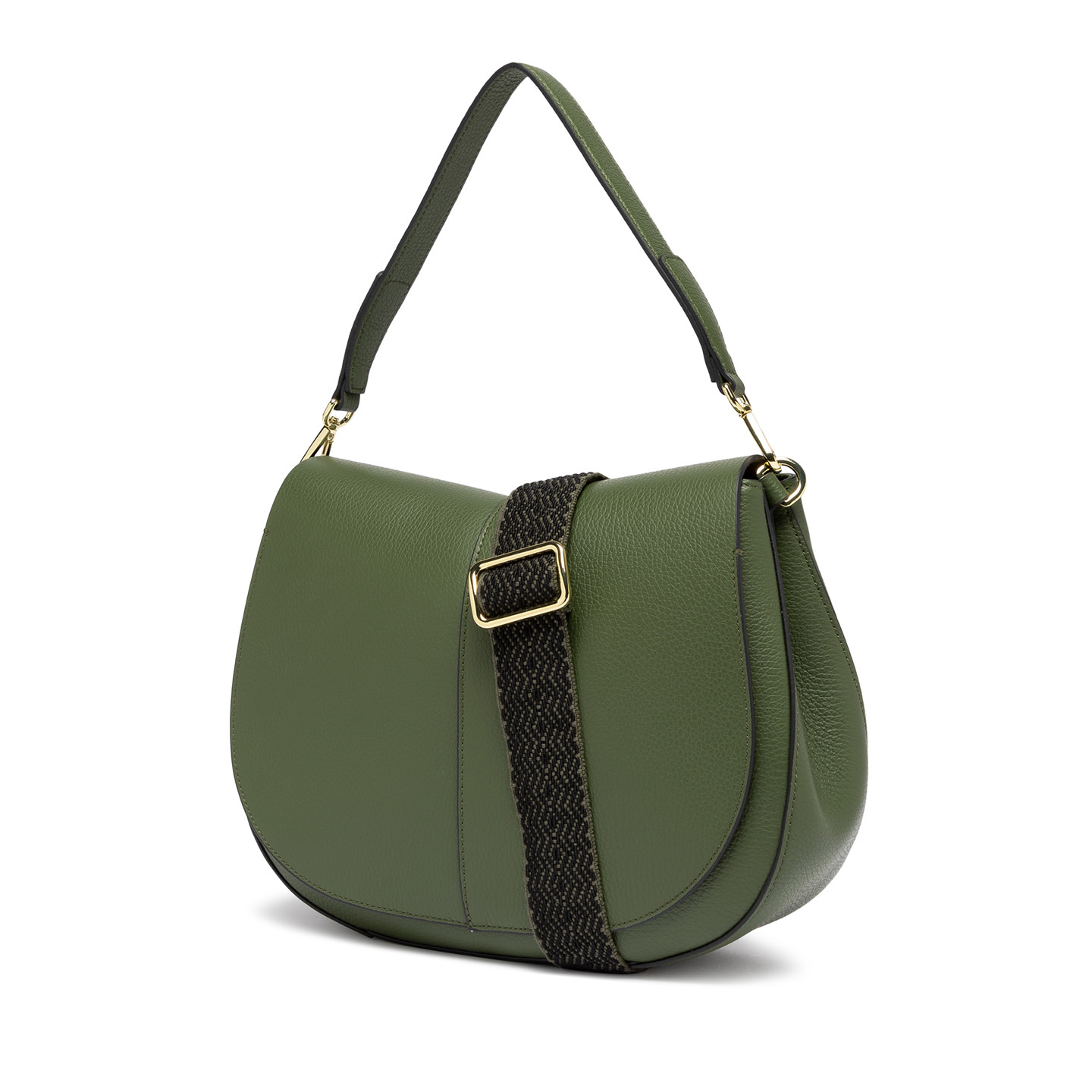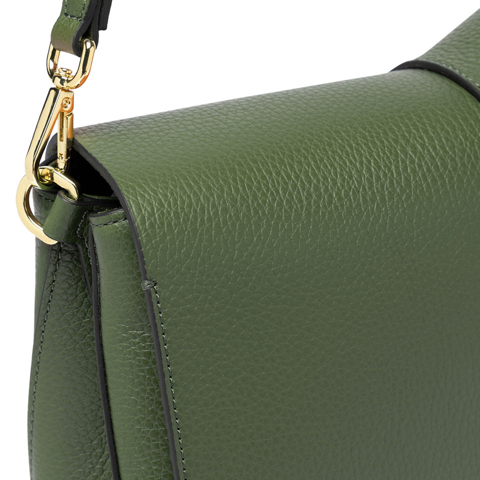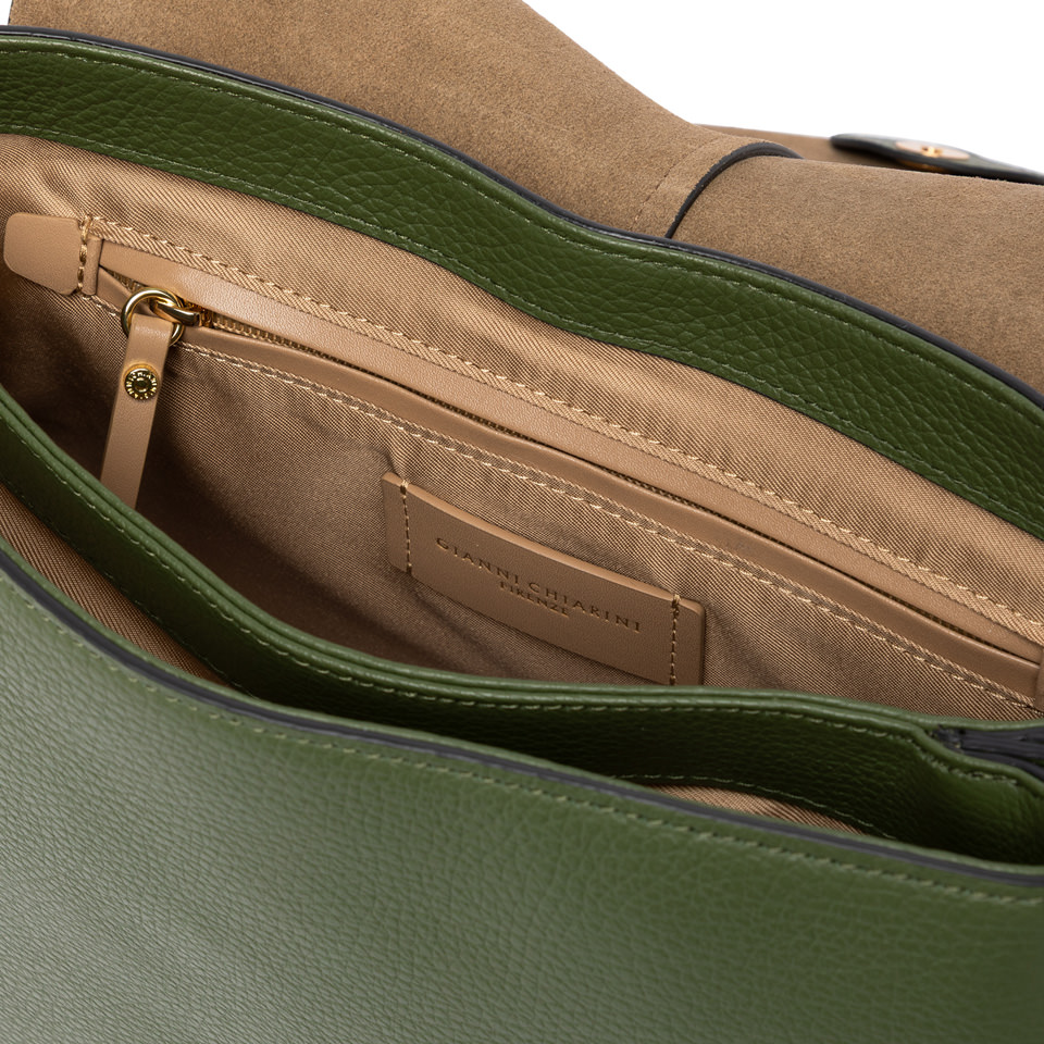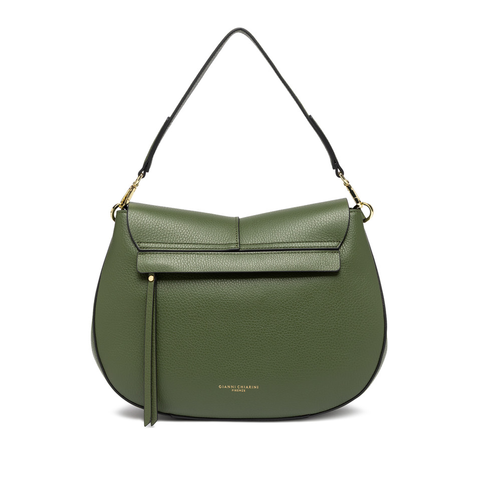 La borsa iconica Helena Round by Gianni Chiarini Firenze è realizzata in pelle martellata e presenta un design strutturato dall'appeal contemporaneo e chic. Dotata di una tracolla che permette una doppia portabilità, questa borsa è pratica e organizzata, con un doppio compartimento interno e una tasca a scomparsa nella parte posteriore. Dimensioni: 32x22x2 cm.