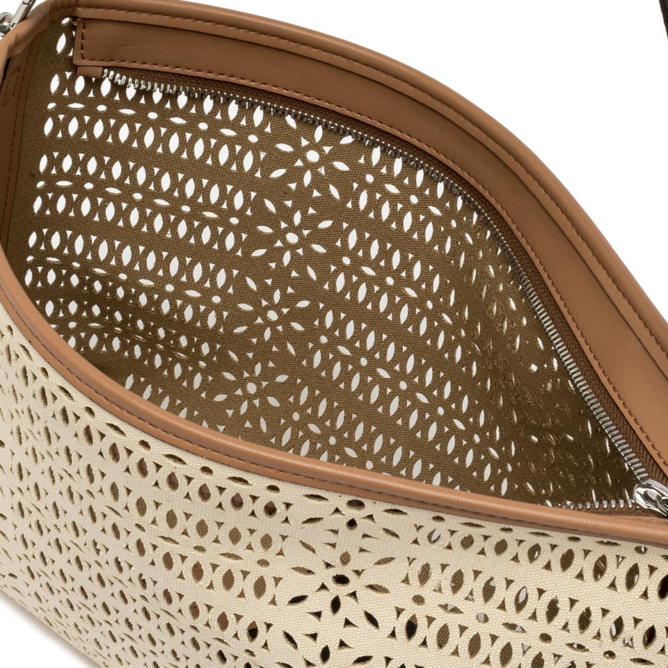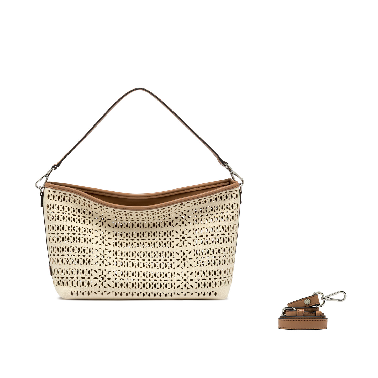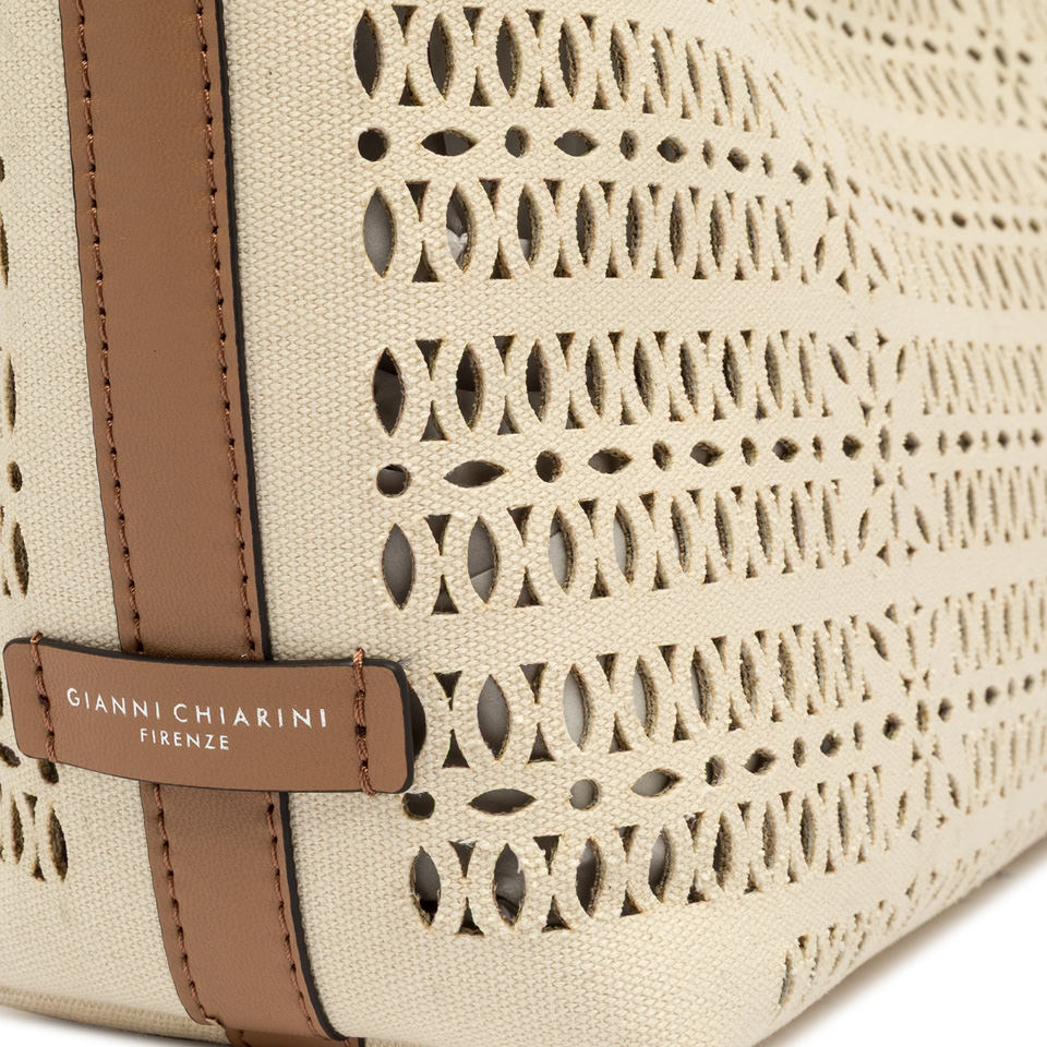 La borsa Mashup di Gianni Chiarini Firenze è realizzata in canvas laserato, che dà vita a un sofisticato decoro traforato, rendendola unica e senza tempo. Dotata di manico in pelle removibile tramite moschettoni e chiusura con zip, è ideale per completare un look casual quotidiano. Include una tracolla regolabile e removibile, per un’opzione crossbody pratica e versatile. Dimensioni: 30x20x10 cm.