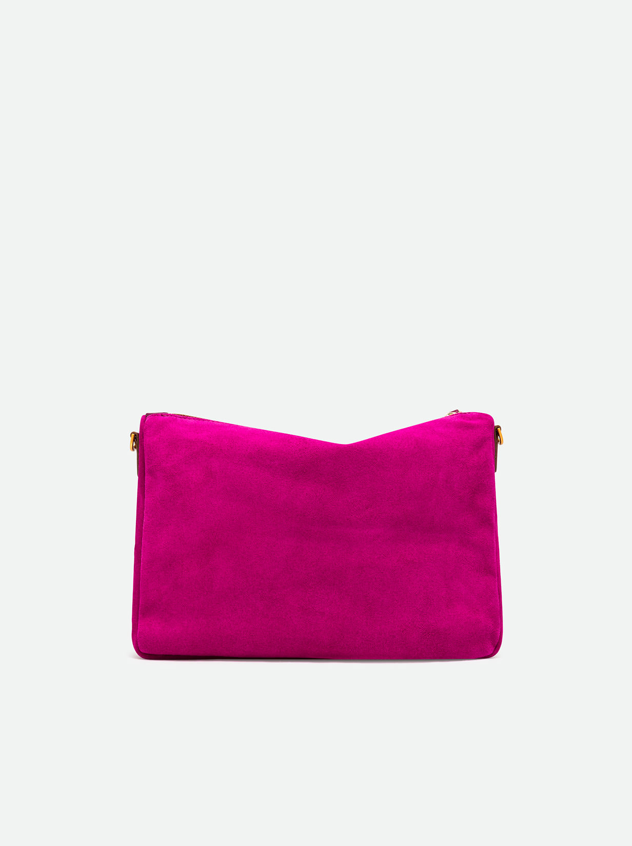 La borsa Nora Pouch by Gianni Chiarini Firenze è realizzata in morbida pelle scamosciata. È dotata di un cinturino in pelle che permette di portarla al polso e di una tracolla regolabile, entrambi removibili. Presenta una chiusura con zip per una maggiore praticità. Dimensioni: 28x21x9 cm.