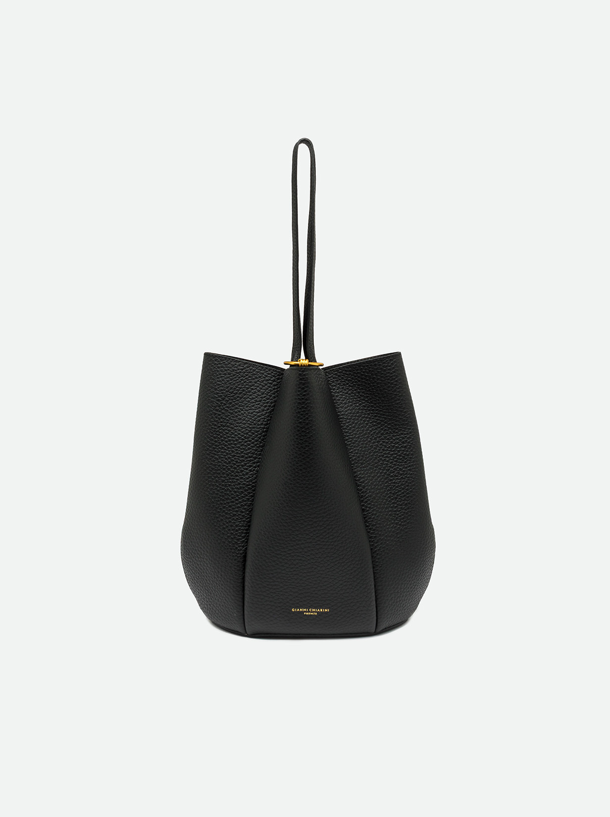 Lily è la nuova shopping bag di Gianni Chiarini Firenze, realizzata in pelle bubble double dalla grana maxi e caratterizzata da una silhouette a fiore unica e sofisticata. Dotata di due manici in pelle, arricchiti dall’iconico nodino in metallo che dona un tocco contemporaneo. La chiusura si realizza inserendo i manici in un anello metallico impreziosito dallo stesso nodino, charm decorativo di grande tendenza. Dimensioni: 24x33x13 cm.
