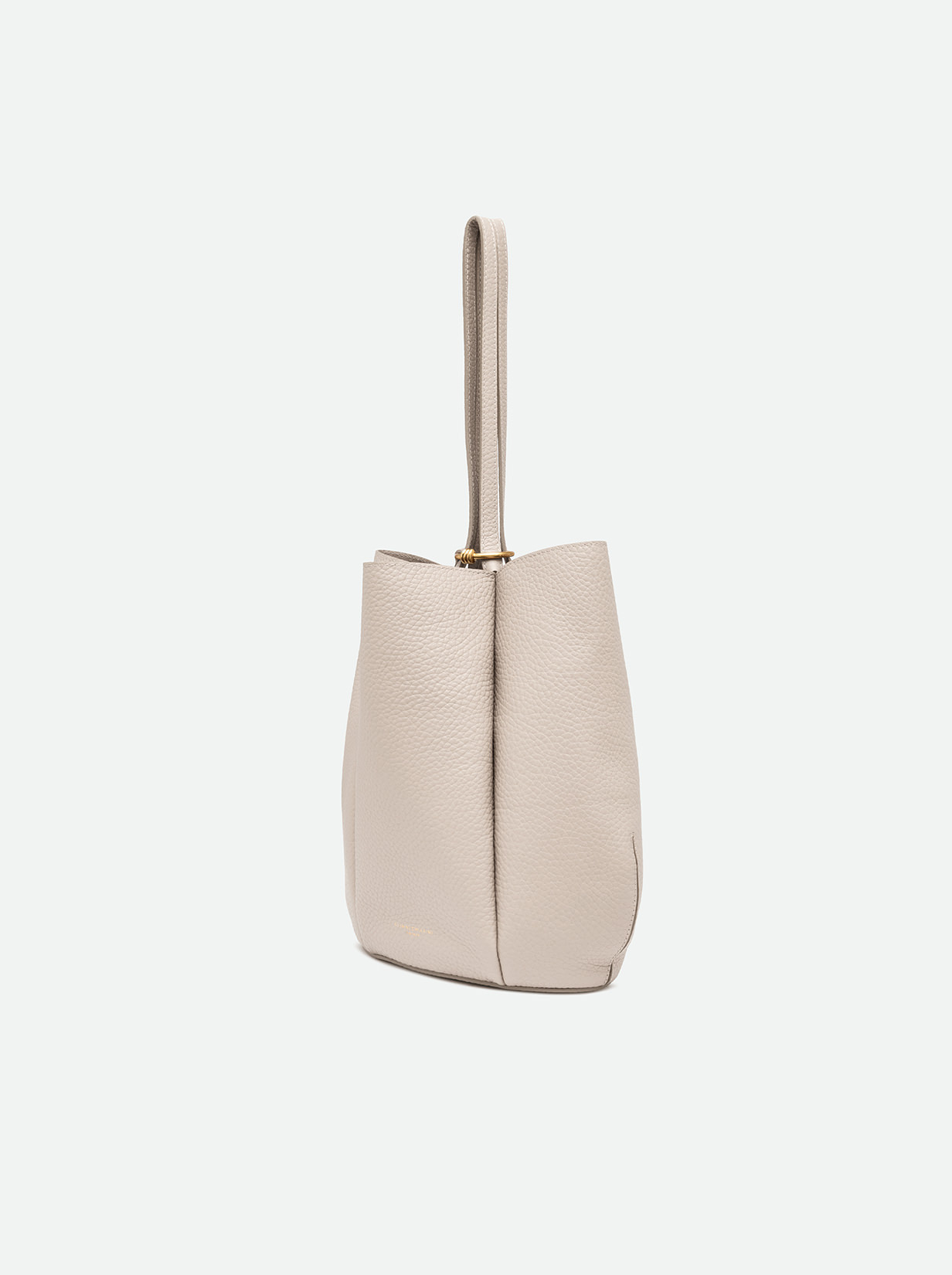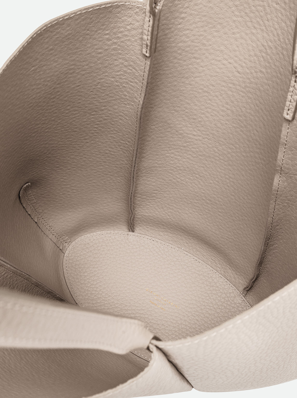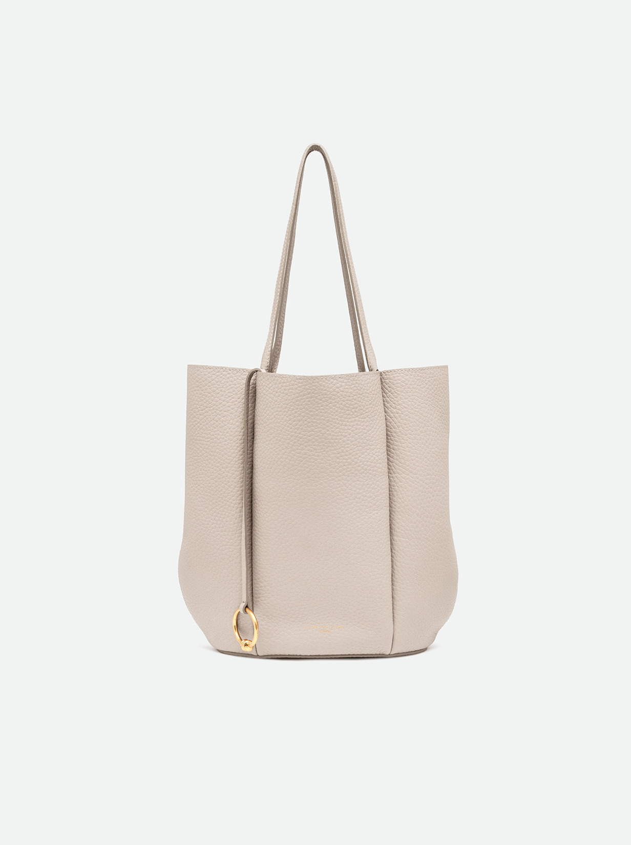 Lily è la nuova shopping bag di Gianni Chiarini Firenze, realizzata in pelle bubble double dalla grana maxi e caratterizzata da una silhouette a fiore unica e sofisticata. Dotata di due manici in pelle, arricchiti dall’iconico nodino in metallo che dona un tocco contemporaneo. La chiusura si realizza inserendo i manici in un anello metallico impreziosito dallo stesso nodino, charm decorativo di grande tendenza. Dimensioni: 24x33x13 cm.