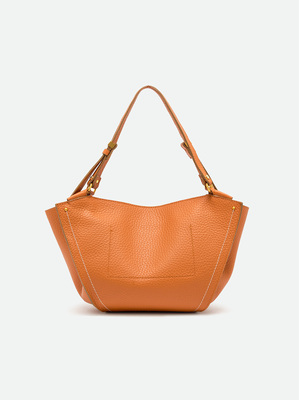 Bloom è la nuova borsa pratica e capiente, caratterizzata da una silhouette a tulipano. Realizzata in pelle double dalla grana maxi, è impreziosita da una cucitura decorativa a contrasto che ne esalta le linee. Gli eleganti dettagli in metallo aggiungono un tocco di lucentezza, rendendola l'accessorio perfetto per ogni occasione. Dimensioni: 43x25x14 cm.