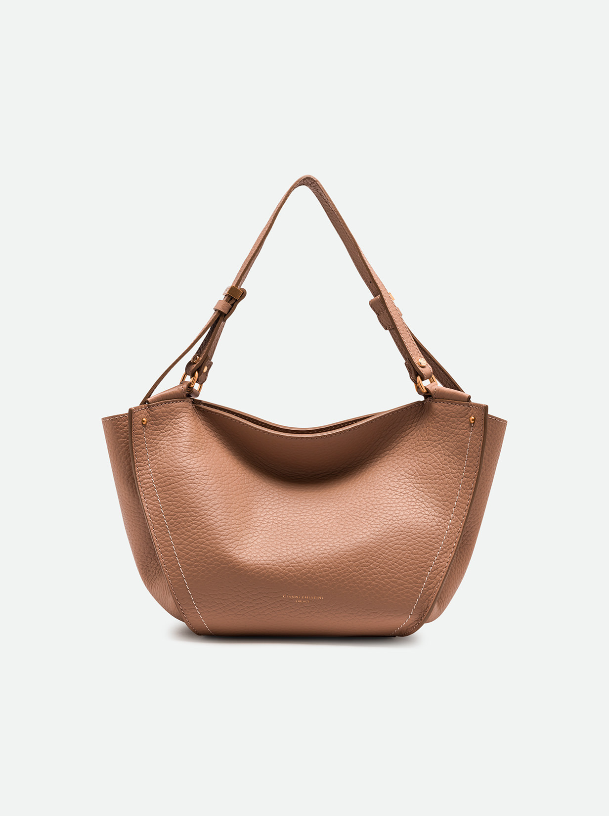 Bloom è un’icona di stile firmata Gianni Chiarini Firenze. Capiente e funzionale, si distingue per la sua elegante silhouette a tulipano. Realizzata in pelle double dalla grana maxi, è impreziosita da una cucitura a contrasto che ne valorizza le linee. I dettagli in metallo completano il design con un tocco luminoso, rendendola l’accessorio perfetto per ogni occasione. Dimensioni: 43x25x14 cm.