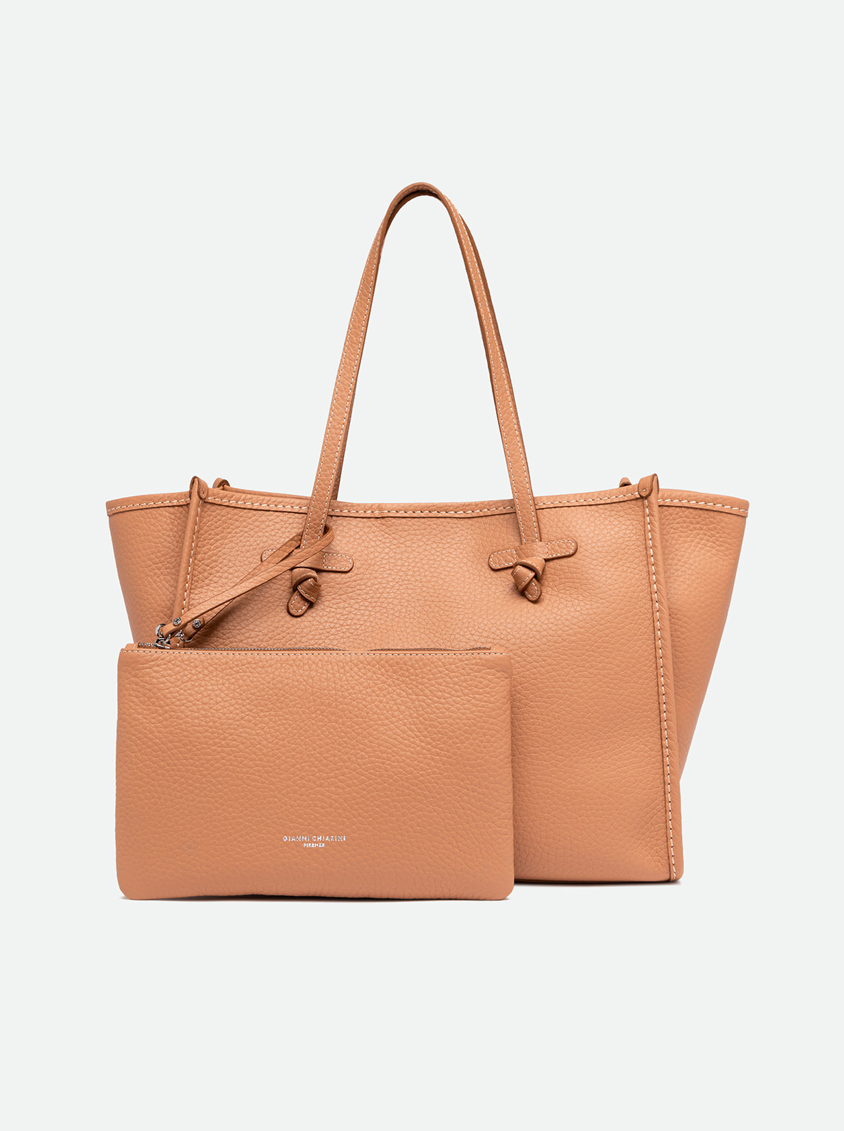 La shopping Marcella by Gianni Chiarini Firenze è realizzata in pelle bubble double ed impreziosita da profili in pelle che regalano alla borsa un tocco di eleganza. Dotata di manici in pelle e di una comoda chiusura tramite magnete. La pochette in pelle in tono la rende pratica e versatile. Dimensioni: 38x31x16 cm.