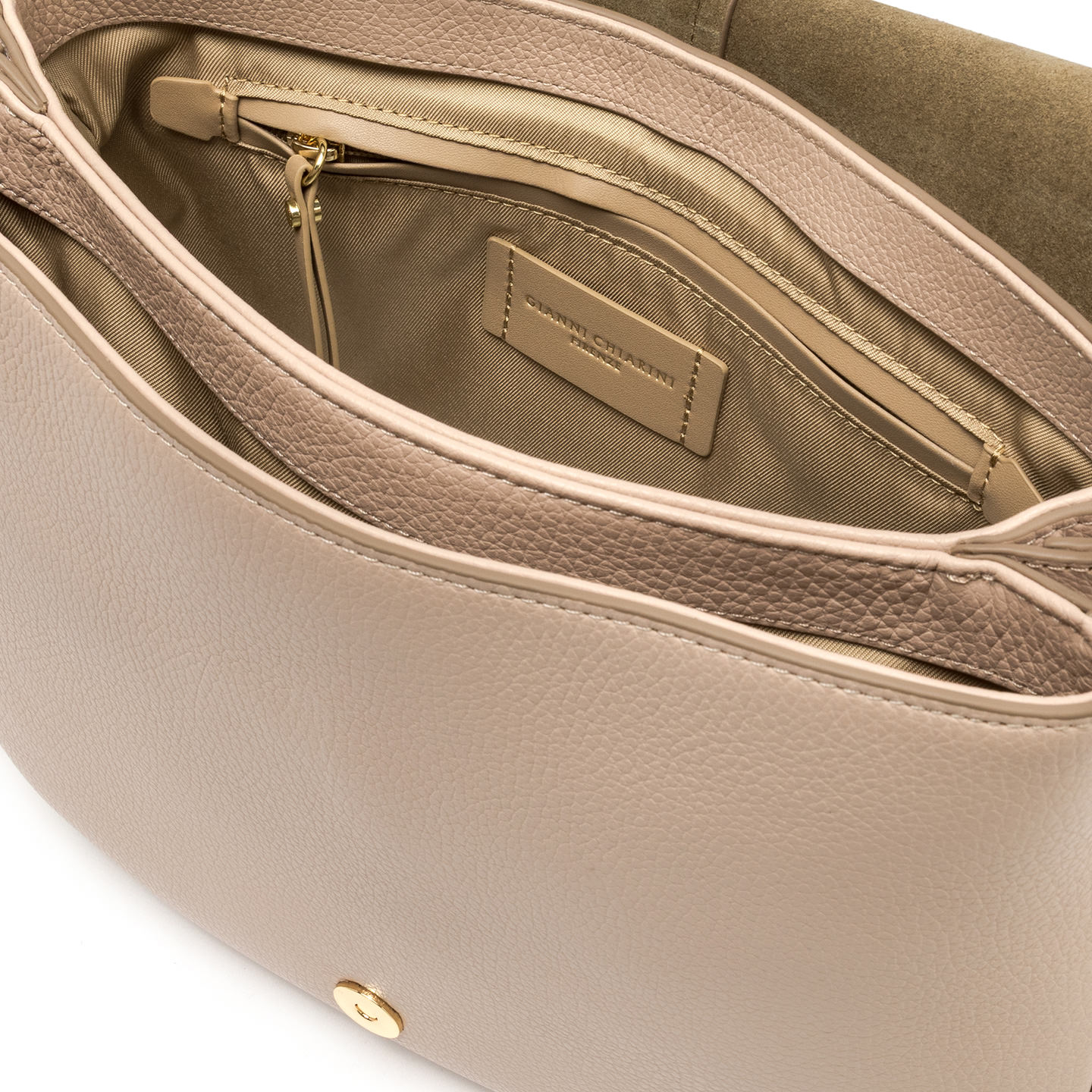 L'iconica Helena Round di Gianni Chiarini Firenze, realizzata in pelle martellata, si distingue per il suo design strutturato e dall'appeal contemporaneo. Versatile e funzionale, è dotata di una tracolla per una doppia portabilità e offre un'organizzazione impeccabile con doppio compartimento interno e tasca a scomparsa sul retro. Dimensioni: 33x24x9 cm.