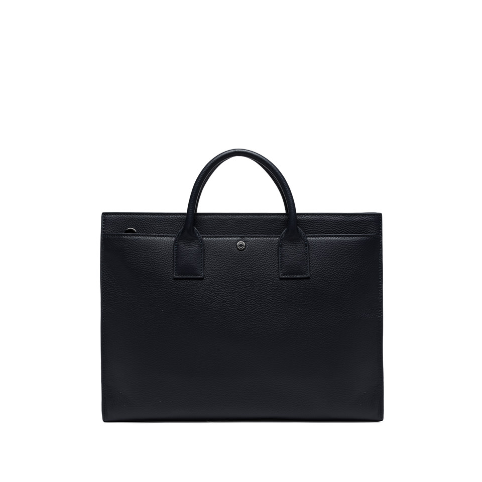 Comoda e pratica cartella, ideale per un uomo che ama interpretare in chiave contemporanea i canoni di uno stile senza tempo. Realizzata in pelle martellata, presenta uno scomparto principale con chiusura a zip e un'ampia tasca piatta sul fronte con rivetto logato. I due manici superiori e la tracolla in pelle regolabile offrono diverse opzioni di portabilità, ideale in ogni occasione. Dimensioni: 38x30x7 cm.