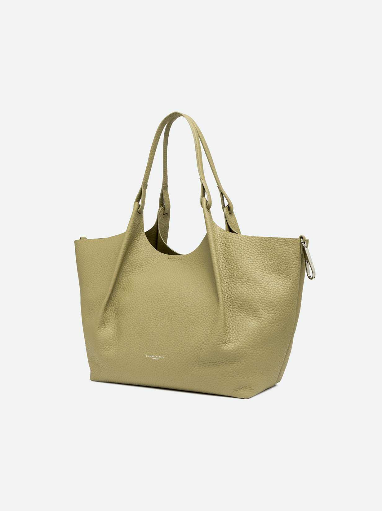 Знаменитая сумка Dua изготовлена из плотной кожи, отличается своей уникальной текстурой. Она имеет одно отделение без подкладки, верхние профили из кожи и двойные ручки в тон по цвету. Практичная и незаменимая сумка идеально дополнит любой образ. Ее можно носить на плече. Размер: 34х38х16 см.