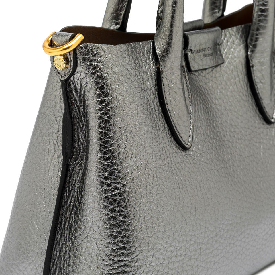 Сумка Aretha от Gianni Chiarini Firenze изготовлена из кожи maxi grain и отличается минималистичным дизайном и четкими линиями. Практичное отделение на молнии внутри обеспечивает безопасность, а кожаные ручки сверху - универсальность и комфорт. Размер: 28х19х12 см.
