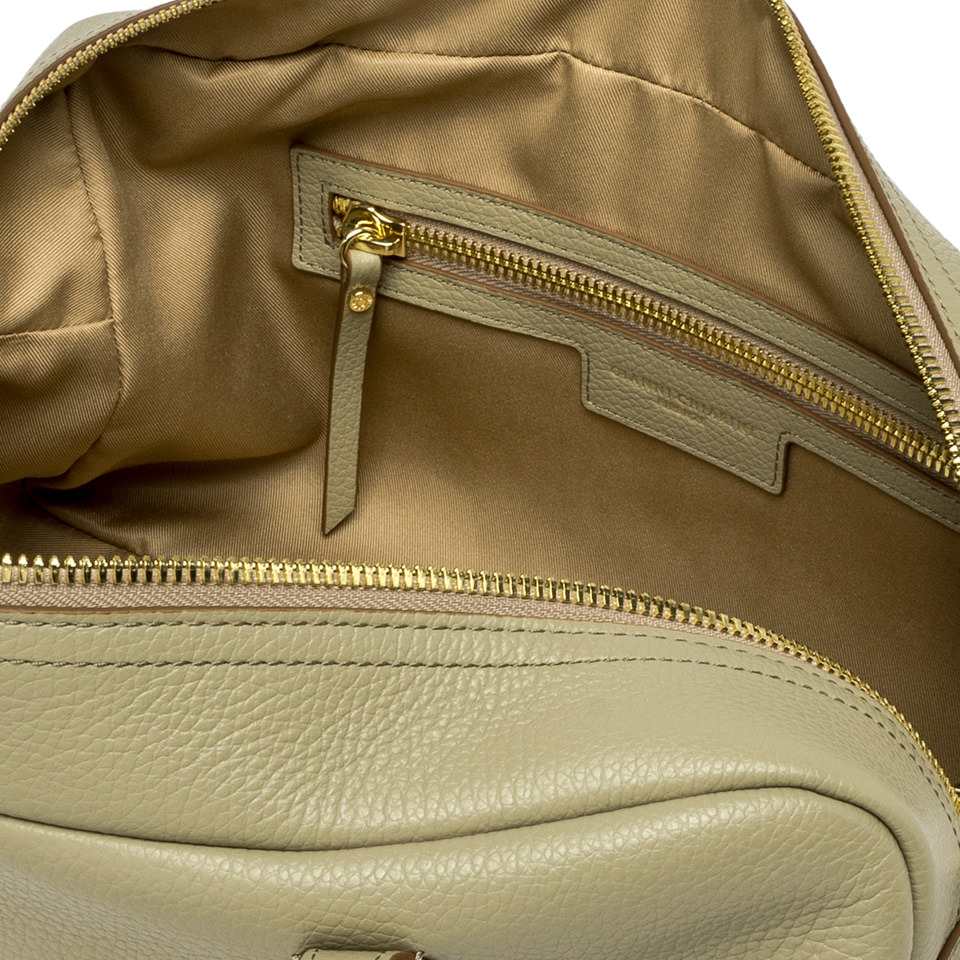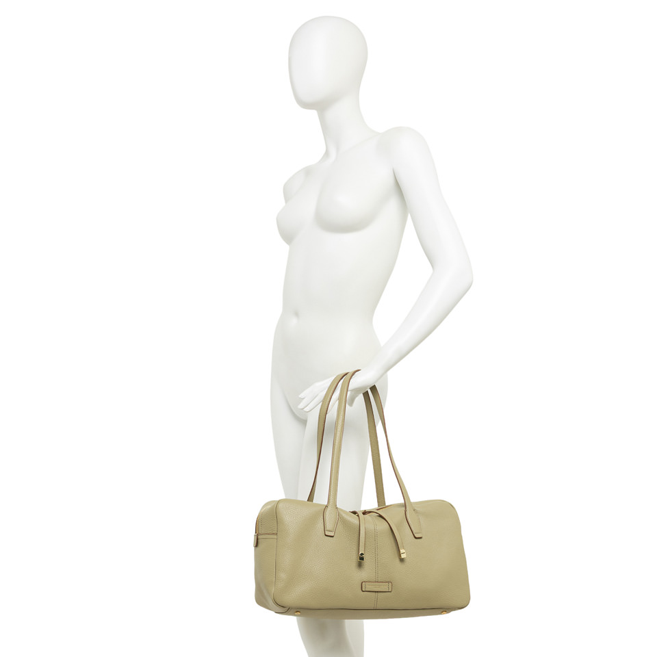 Aryna - сумка от Gianni Chiarini Firenze выполнена из фактурной кожи. Идеально подходит для спортивной женщины, которая по-прежнему ценит женственность. Оснащена двойными ручками для удобной переноски и основным отделением с застежкой-молнией на два бегунка и кожаными застежками-молниями с металлическими деталями. Заклепки с логотипами придают дизайну особый колорит. Размер: 38x20x14 см.