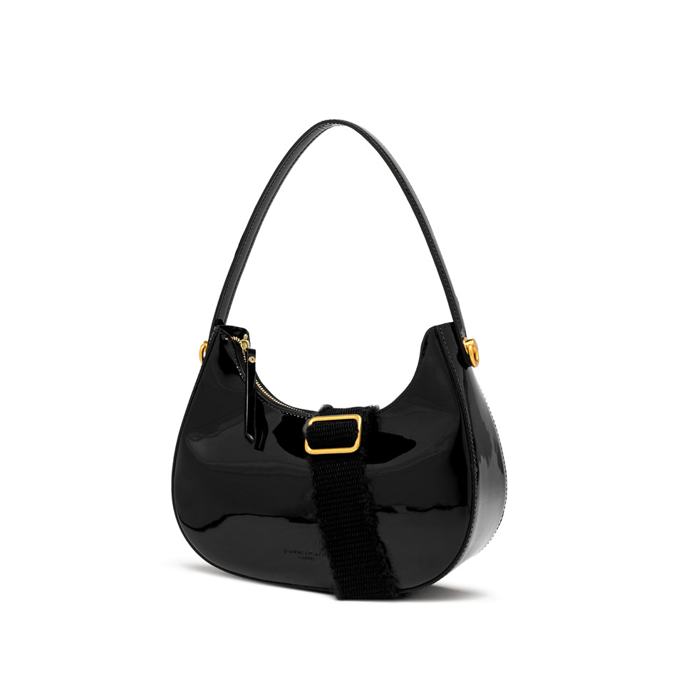 Blanche - это сумка с непринужденным и в то же время женственным дизайном, выполнена из гладкой, глянцевой лакированной кожи, дополнена металлическими деталями, которые подчеркивают ее блеск. Съемный регулируемый тканевый ремешок позволяет носить ее как в руке, так и через плечо. Универсальный аксессуар, идеально подходящий для любого случая. Размер: 28х23х9 см.