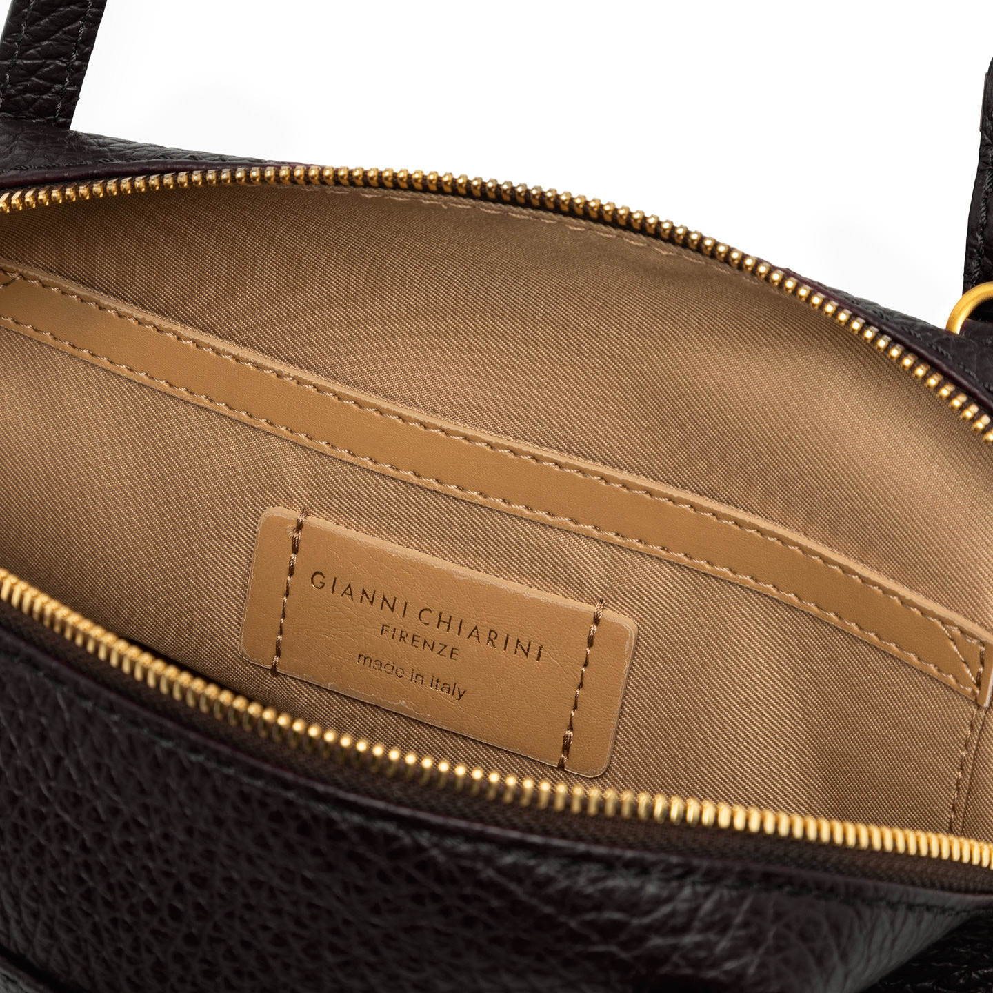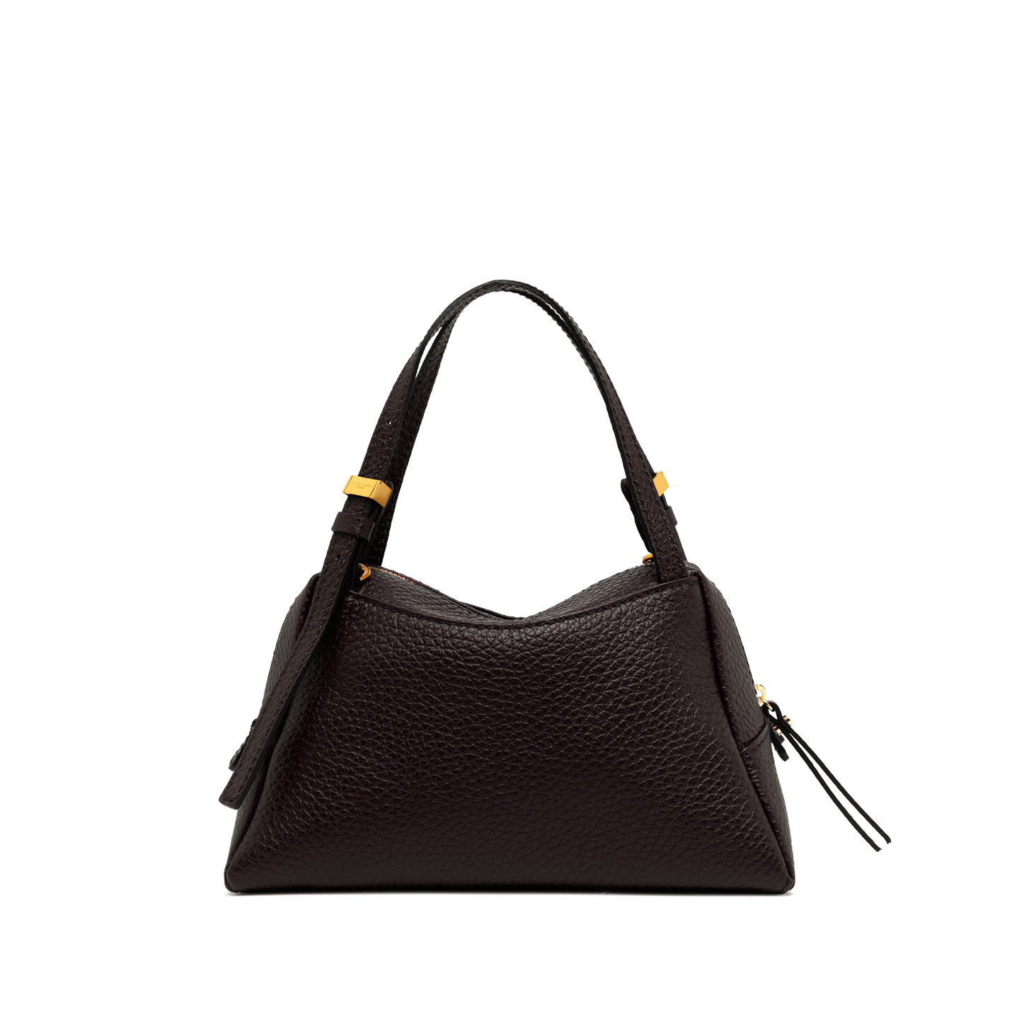 Новая мини-сумка Dea, выполнена из натуральной кожи, отличается простыми и модными формами. Она оснащена основным отделением на молнии и имеет геометрическую структуру, которая придает ей современный и линейный вид. Детали с логотипом подчеркивают ее стиль. Сумкку можно носить в руке или через плечо благодаря длинному ремешку. Размер: 26x16x15 см.