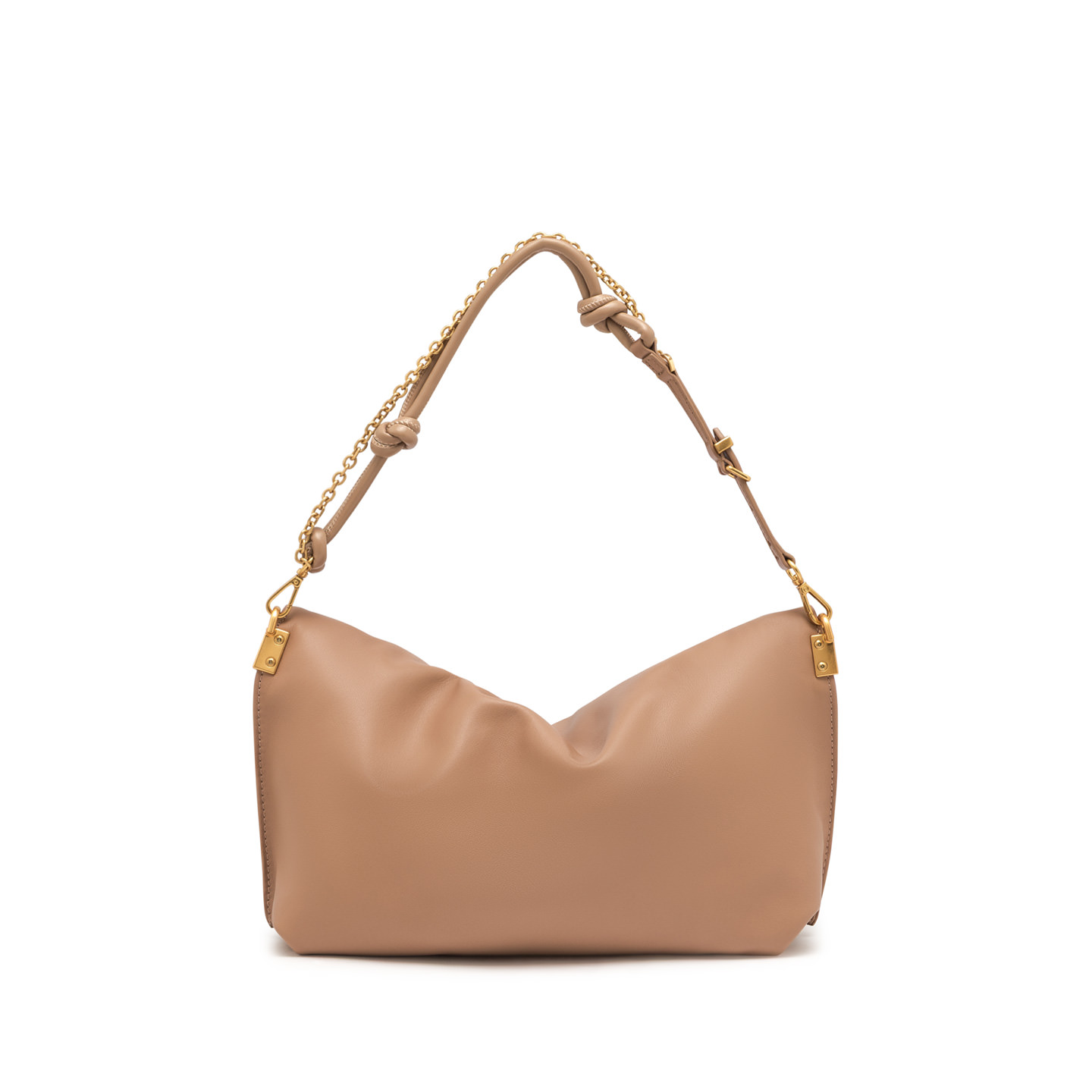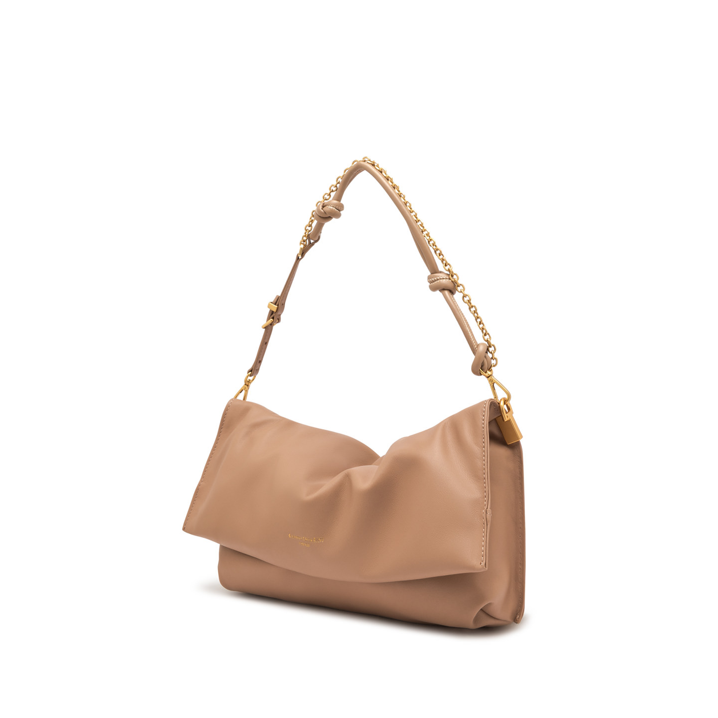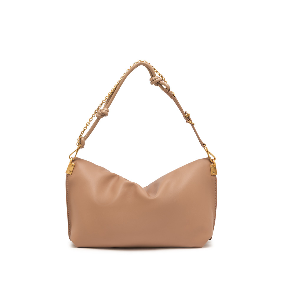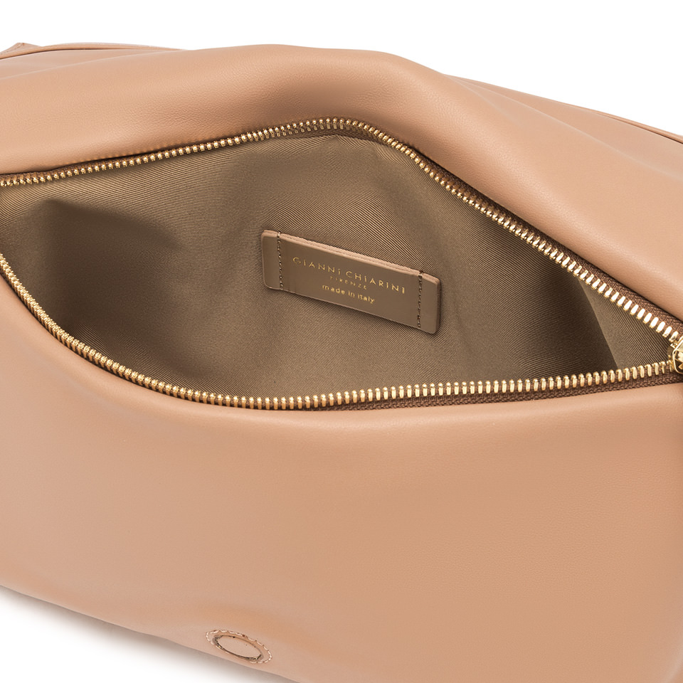 Модель Fanny от Gianni Chiarini Firenze имеет изящный удлиненный силуэт, который выглядит женственно и современно, идеально подходит даже для вечернего наряда. Модель выполнена из кожи и застегивается сверху на молнию. Два варианта переноски позволяют носить ее на плече, благодаря золотистому ремешку-цепочке или через плечо с регулируемым кожаным ремешком. Детали в виде узелков и металлические вставки придают ей изюминку и блеск, что делает модель подходящей для любого случая. Размер: 29x17x8,5 см.