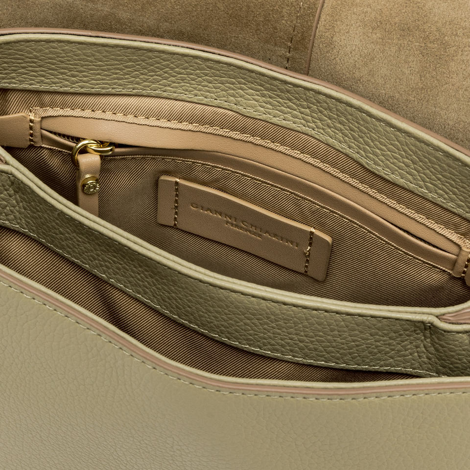 Культовая сумка Helena Round от Gianni Chiarini Firenze, изготовлена из кованой кожи, отличается структурированным дизайном и современной привлекательностью. Универсальная и функциональная, она оснащена ремешком для двойной переноски и обеспечивают безупречную организацию благодаря двойному внутреннему отделению и потайному заднему карману. Размер: 26х21х9 см.