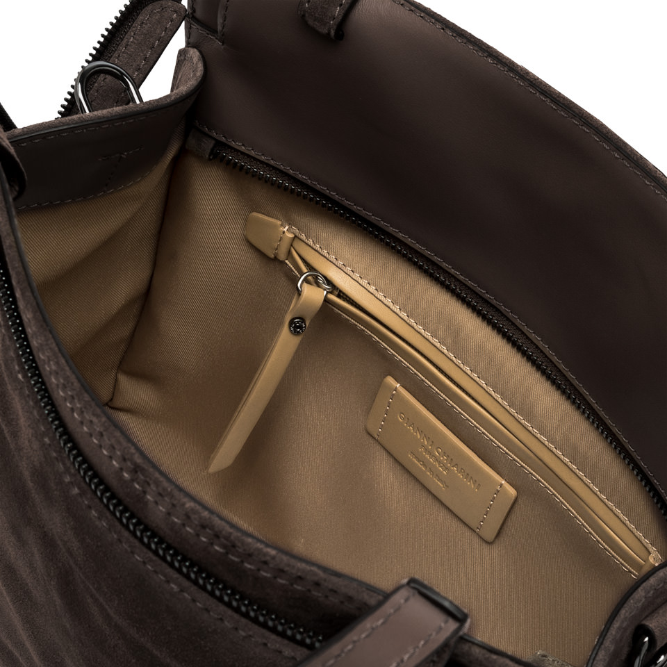 Сумка Janis, выполненная в городском стиле из мягкой замши, идеально подойдет для смелой и модной женщины. Она имеет основное отделение на молнии и металлическую застежку-молнию, верхние ручки и регулируемый в тон кожаный плечевой ремень.