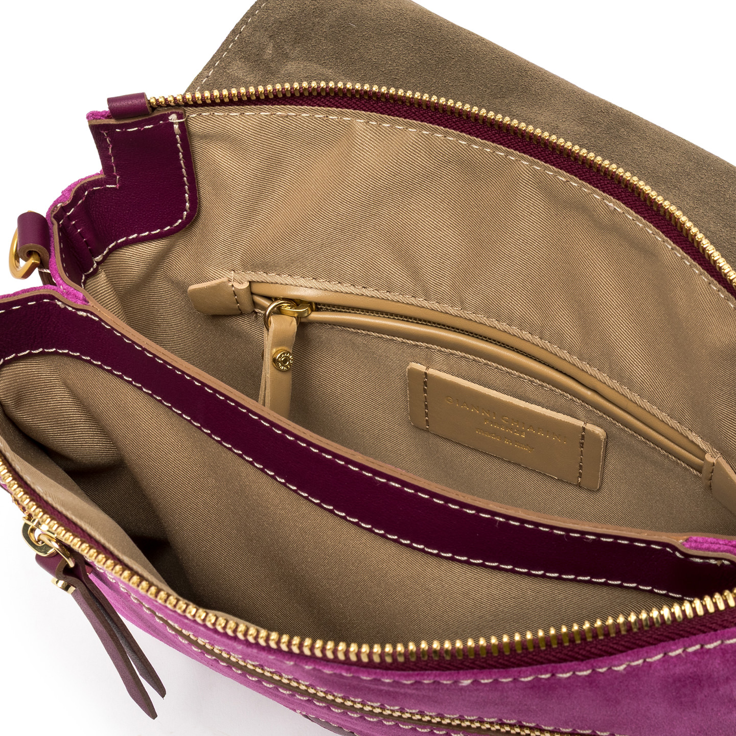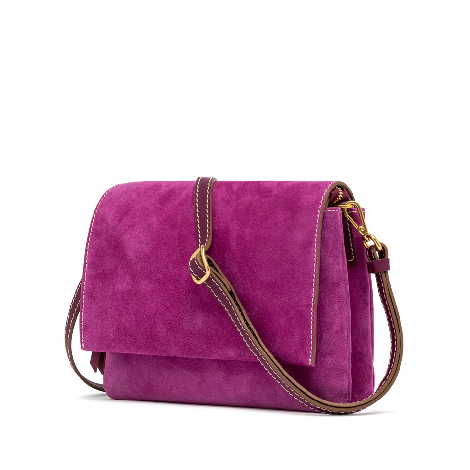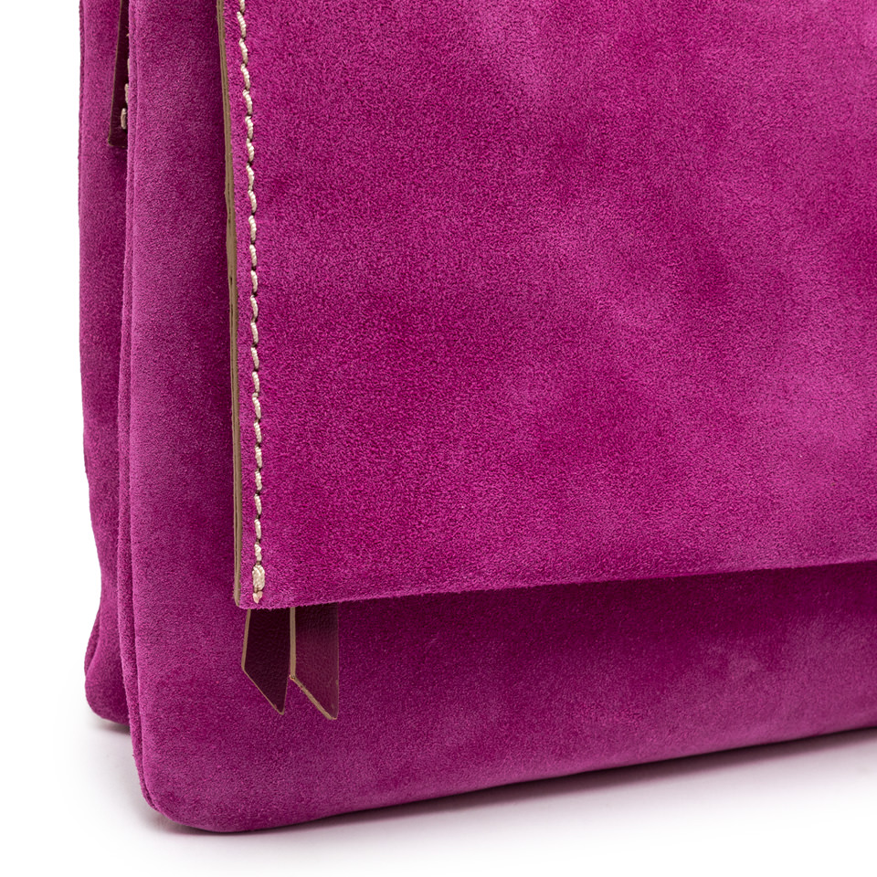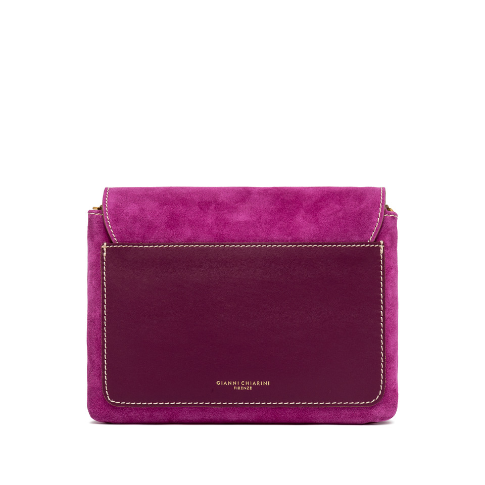 Сумка Three от Gianni Chiarini Firenze, изготовлена из высококачественной замши, можно носить в руках или на тонком кожаном ремешке. Новый дизайн, молодежный и игривый, отличается контрастными молниями, верхним клапаном и застежкой на магнитную кнопку. Идеально подходит как для повседневных нарядов, так и для элегантных вечеров. Размер: 25х22х5 см.