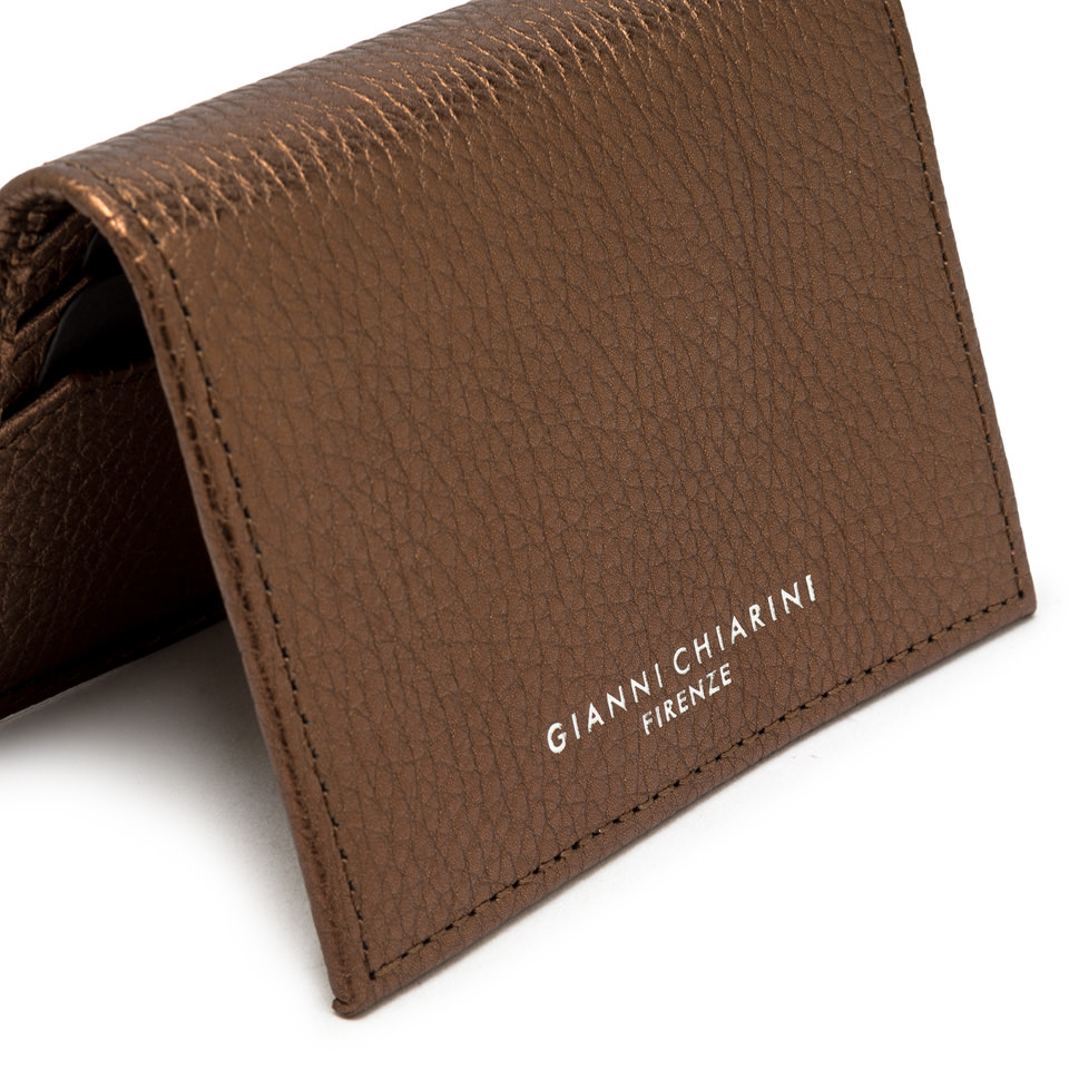 Маленький и стильный кошелек от Gianni Chiarini Firenze идеально подходит для тех, кто ищет практичный, но в то же время модный аксессуар. Изготовлен из ламинированный кожи, имеет отделение на кнопке и различные кармашки. Размер: 10,5x8x1,5 см.